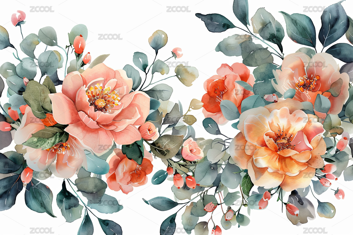 淡雅水彩玫瑰花束