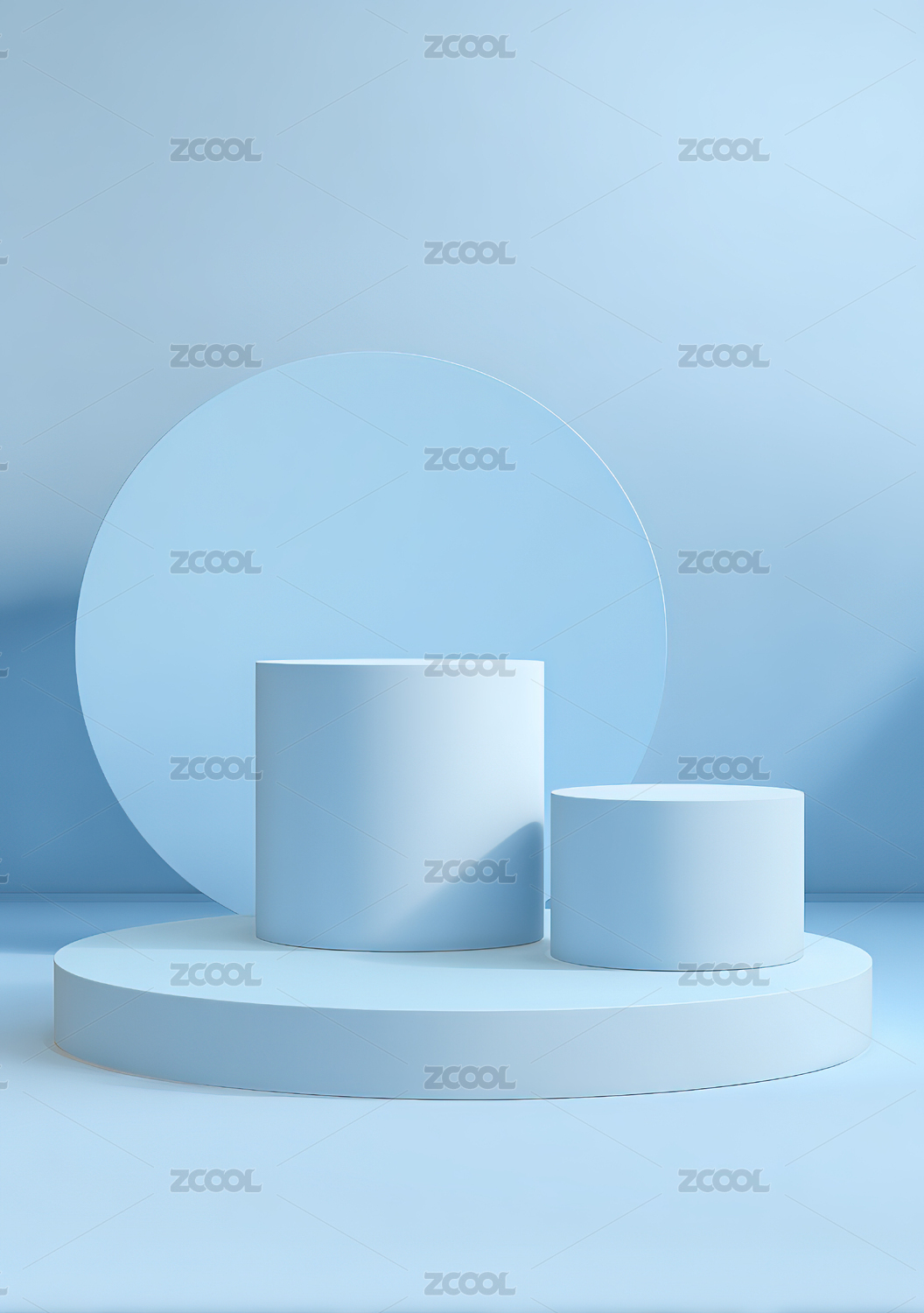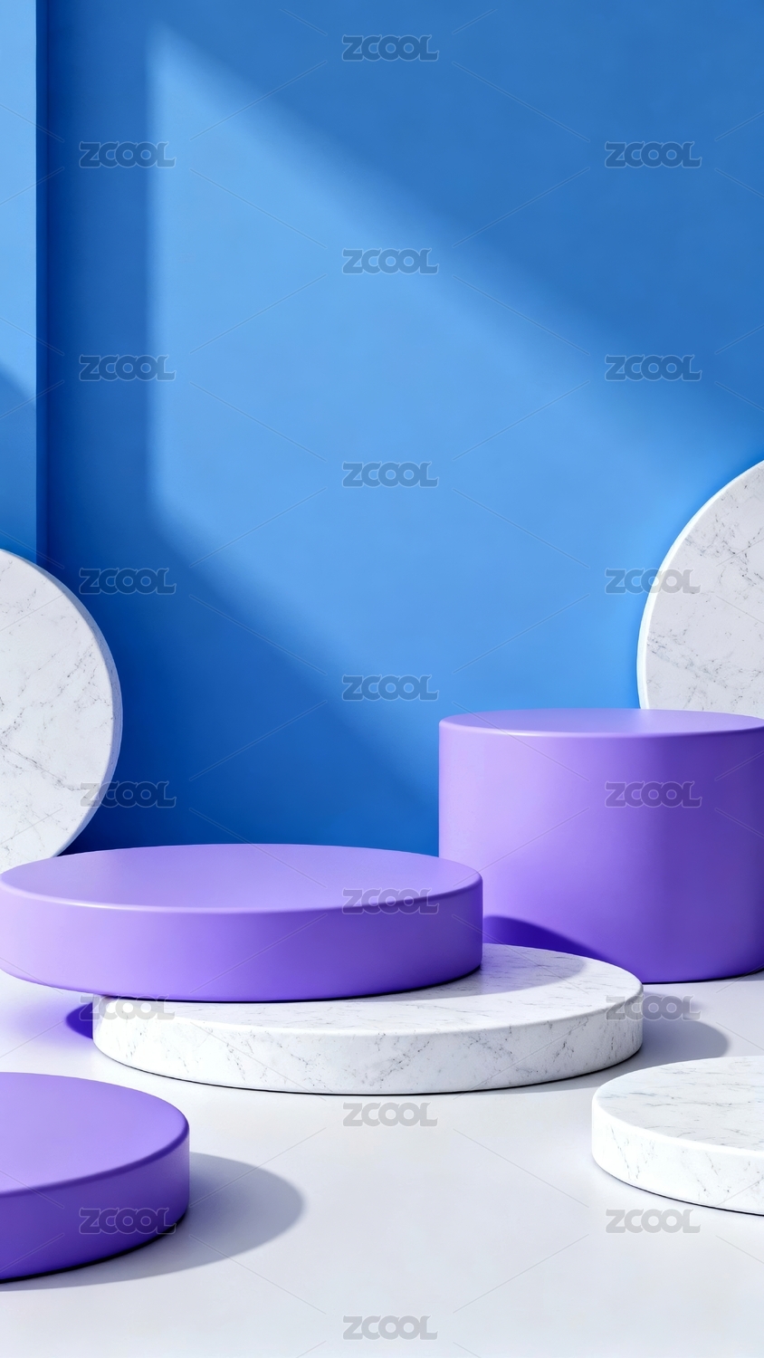 蓝色背景下的圆柱体展示台