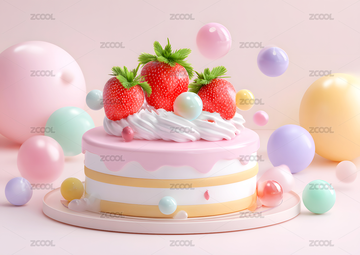 生日蛋糕3D渲染周年纪念日庆祝活动素材