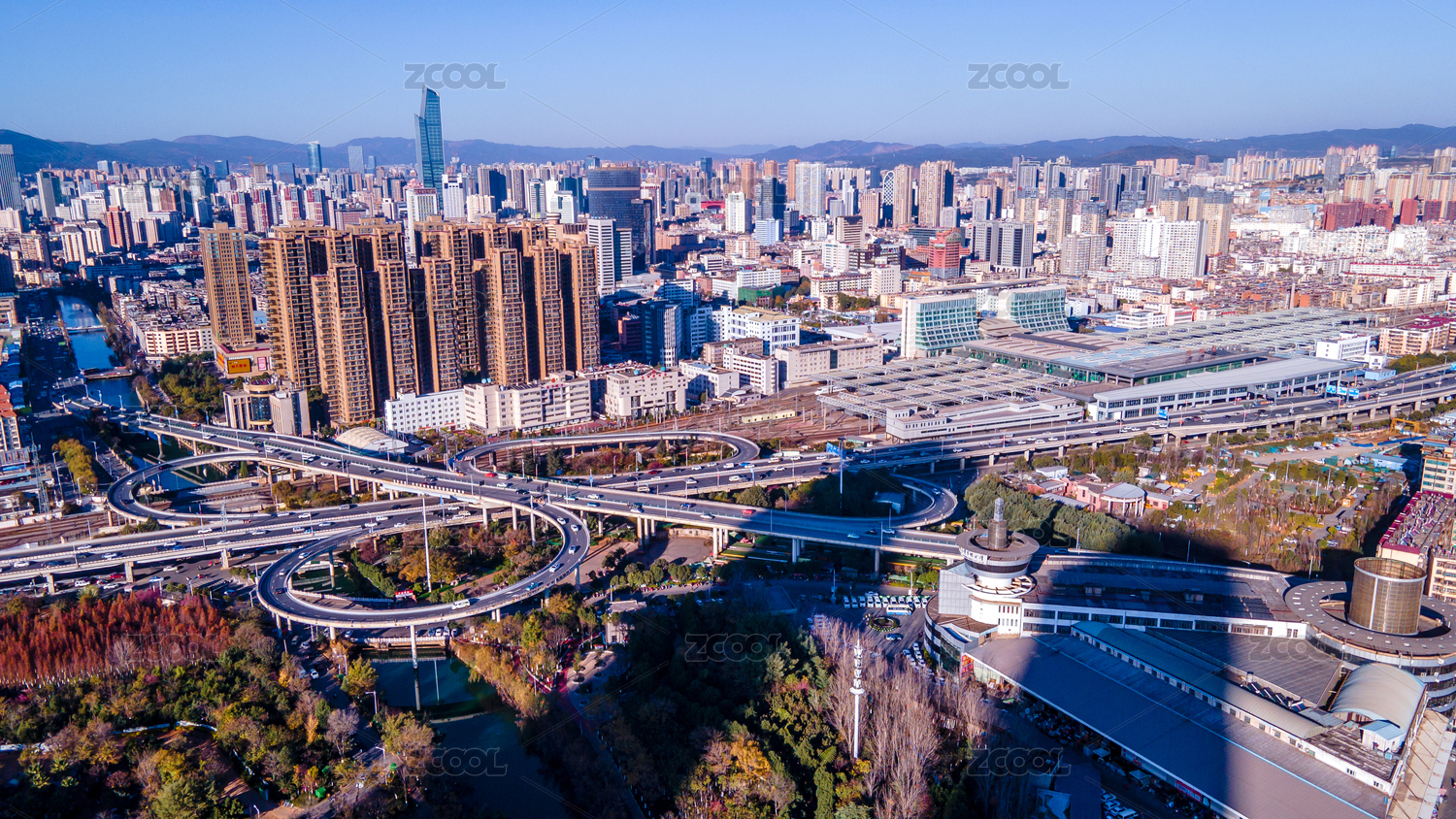 航拍云南昆明盘龙区城市天际线市区高楼大厦