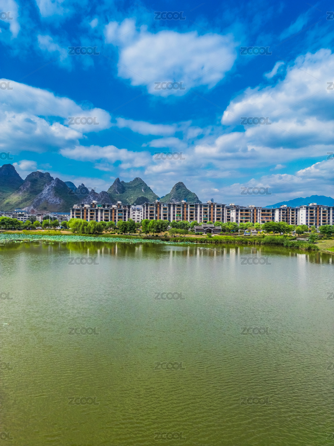中国广西贺州爱莲湖公园航拍