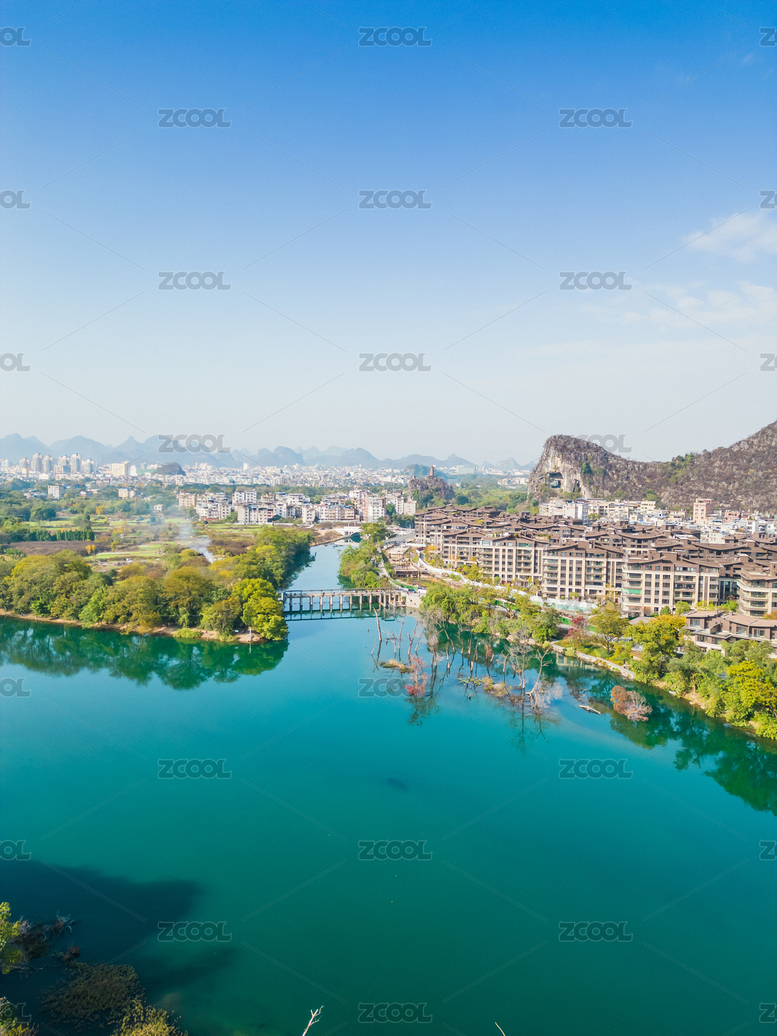 冬季桂林漓江和城市建筑