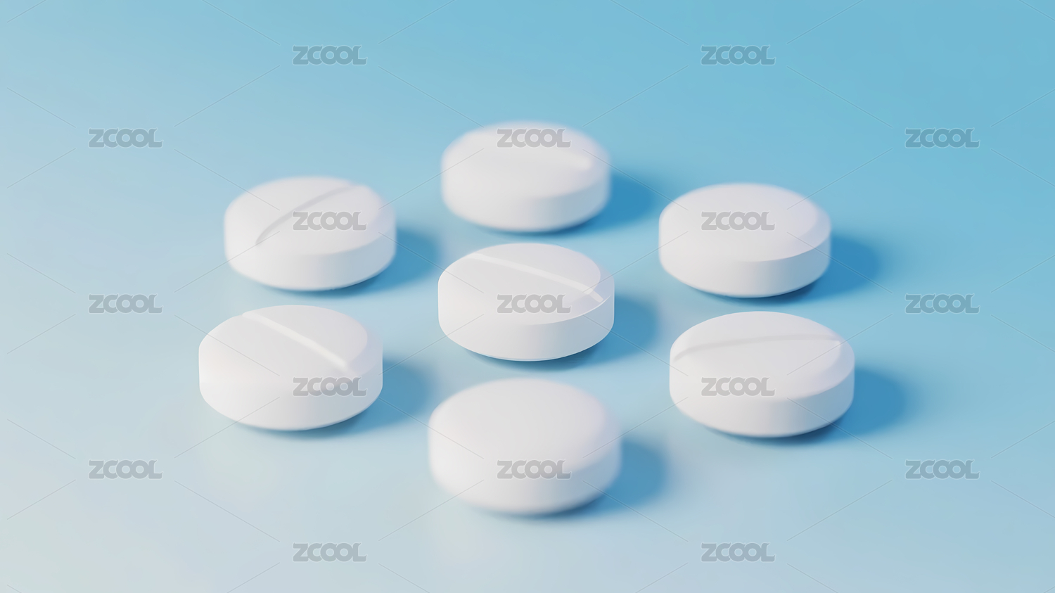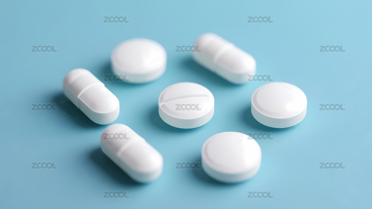 白色药片与浅蓝背景