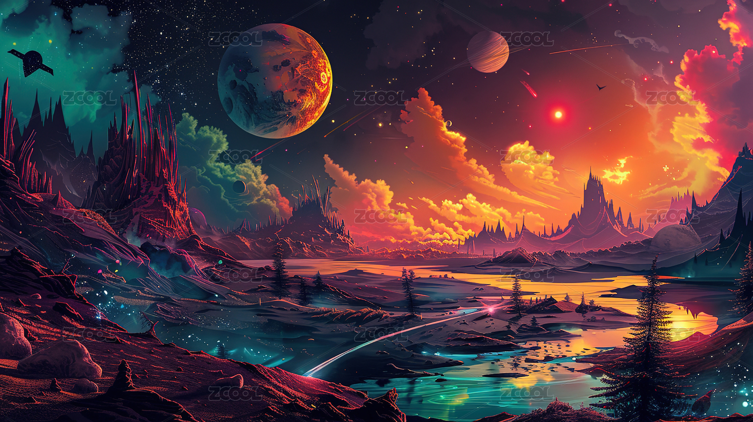 星空中的地球和月亮
