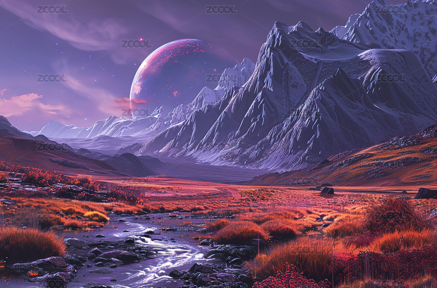 星空下的雪山和雪山