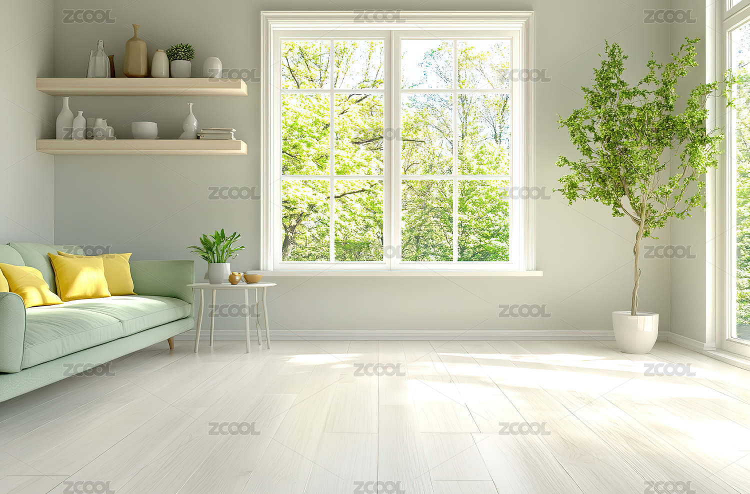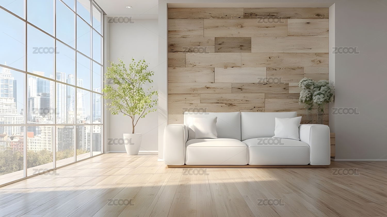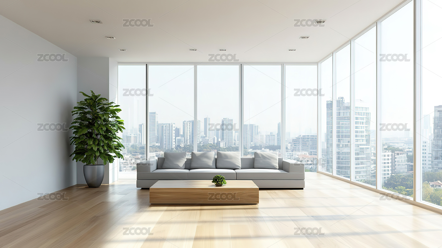 落地窗建筑内部大理石展厅带办公桌沙发窗外