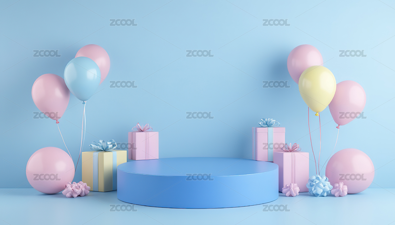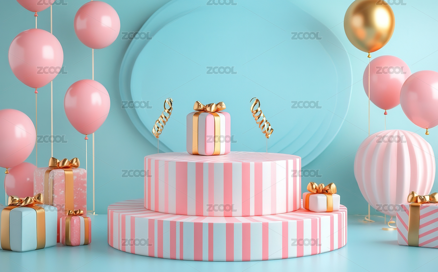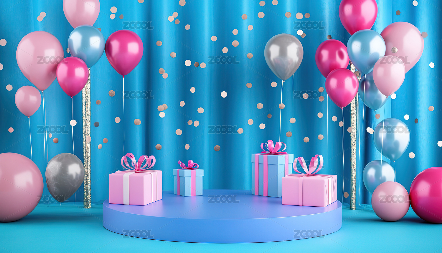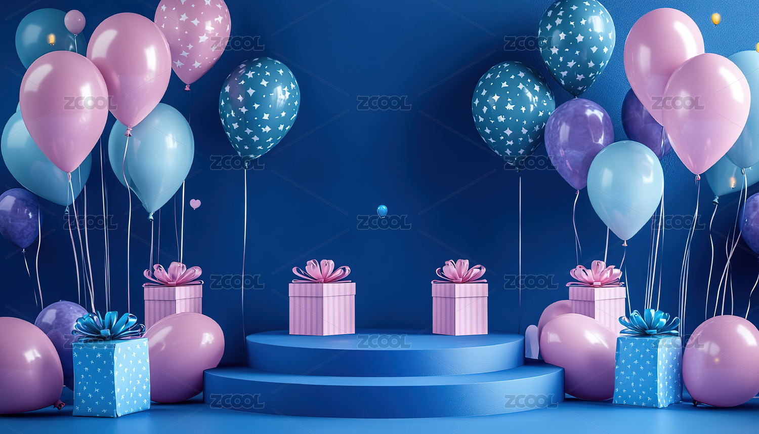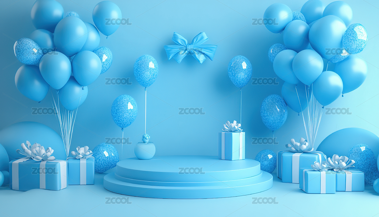 蓝色背景下的生日蛋糕和派对蛋糕的特写镜头