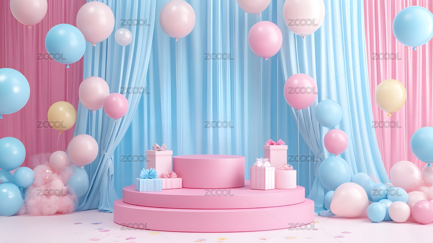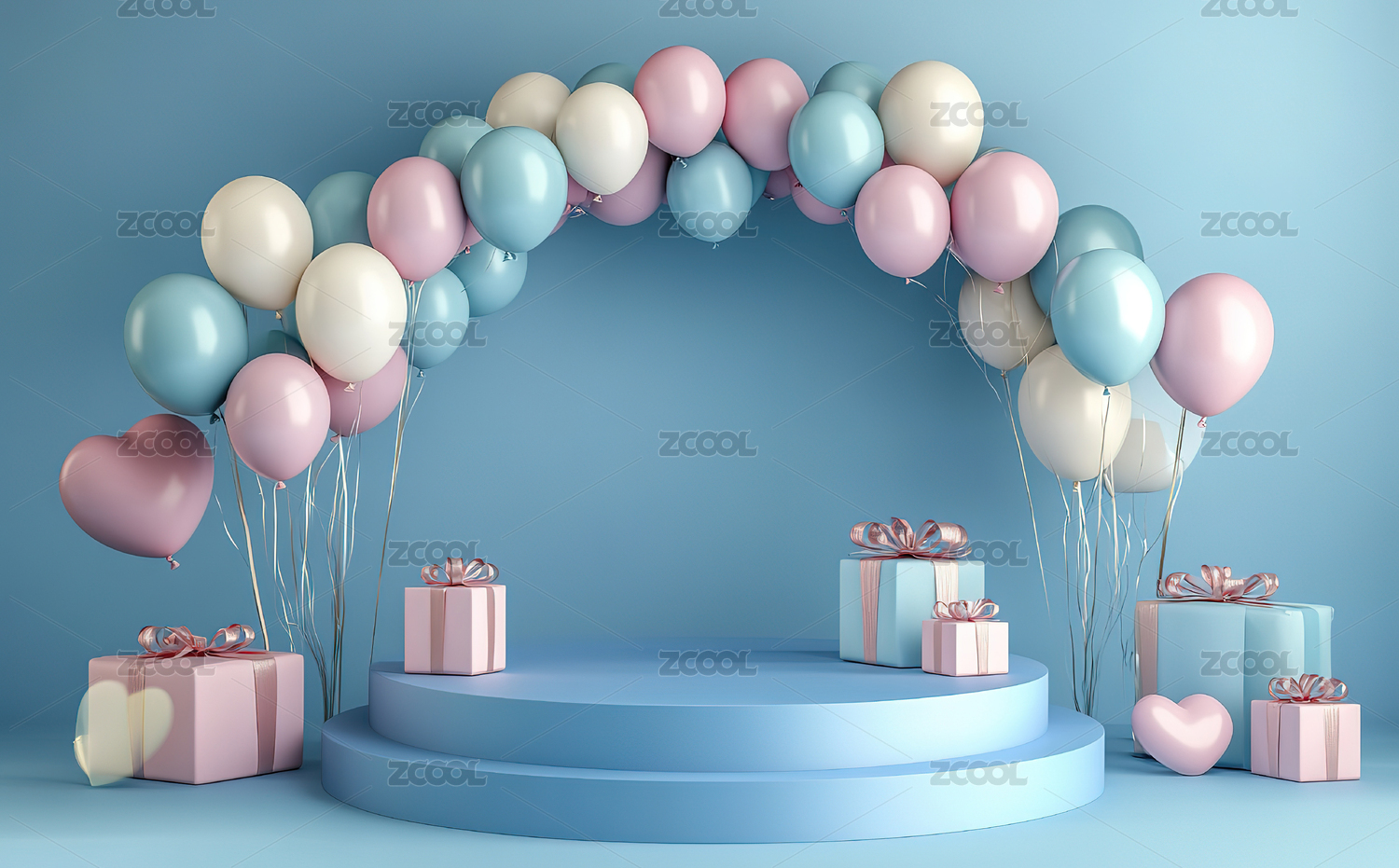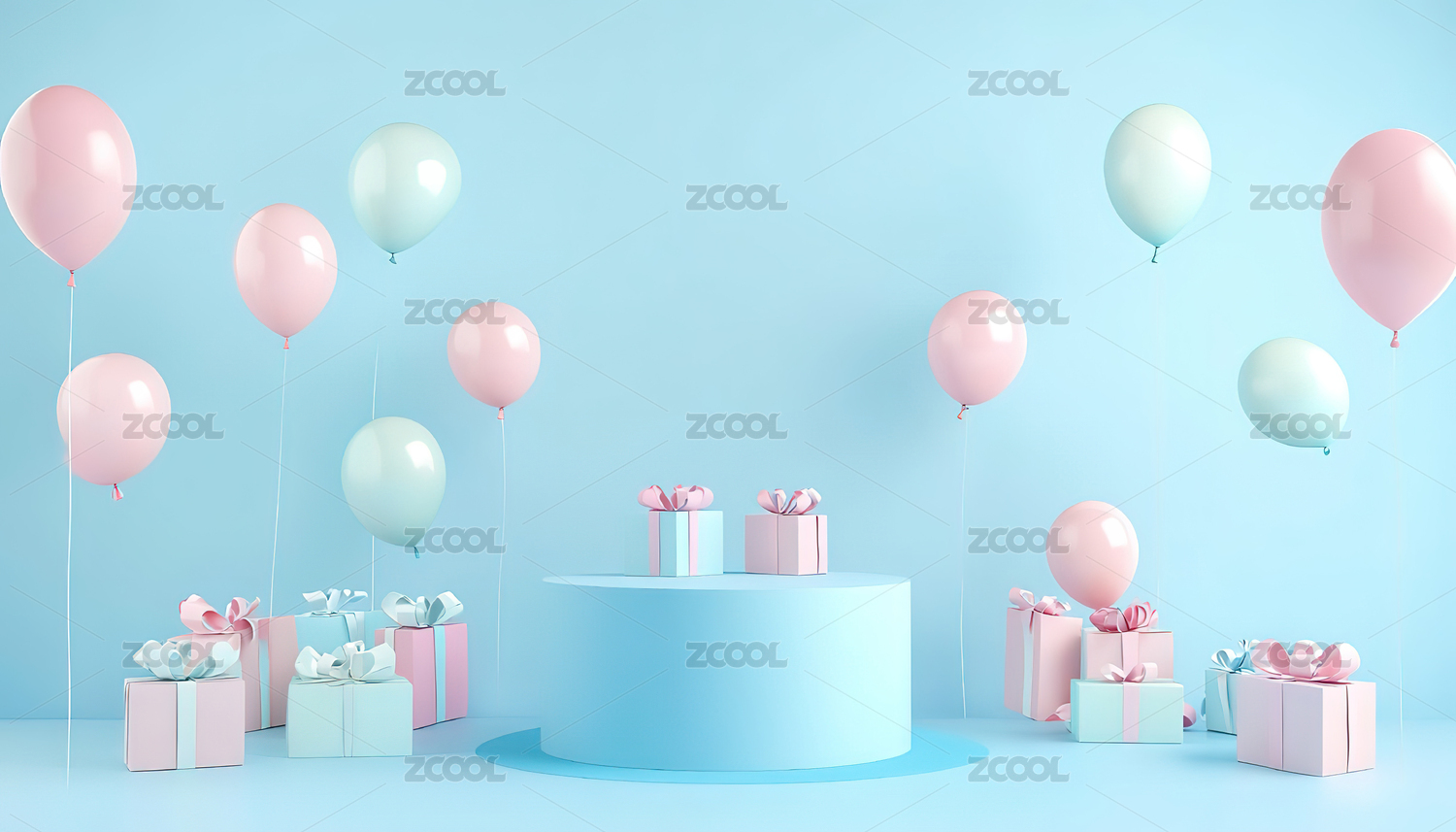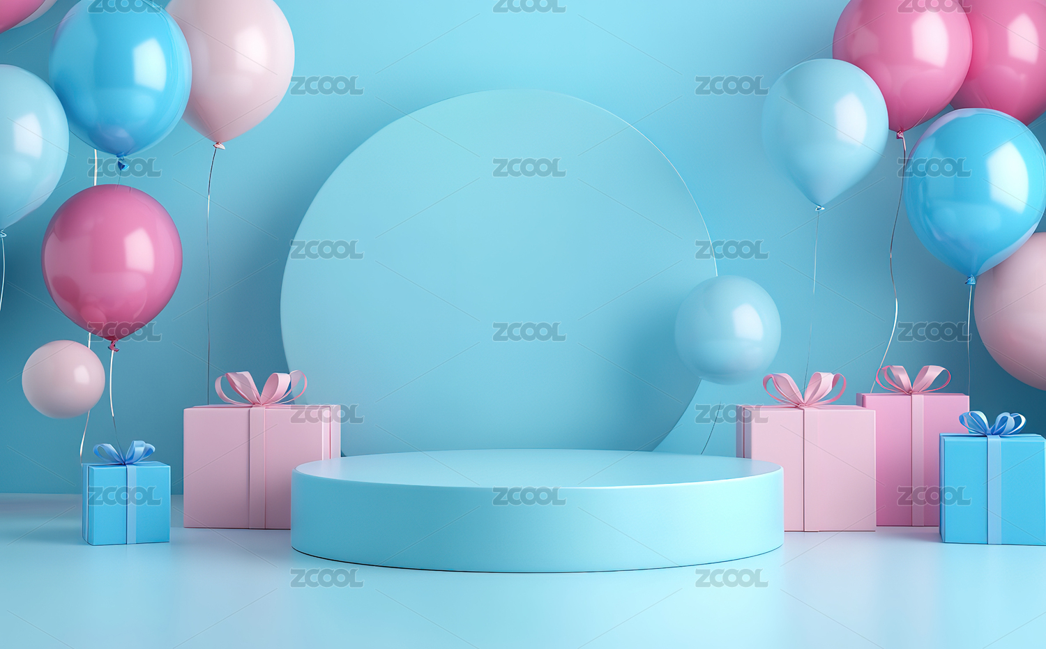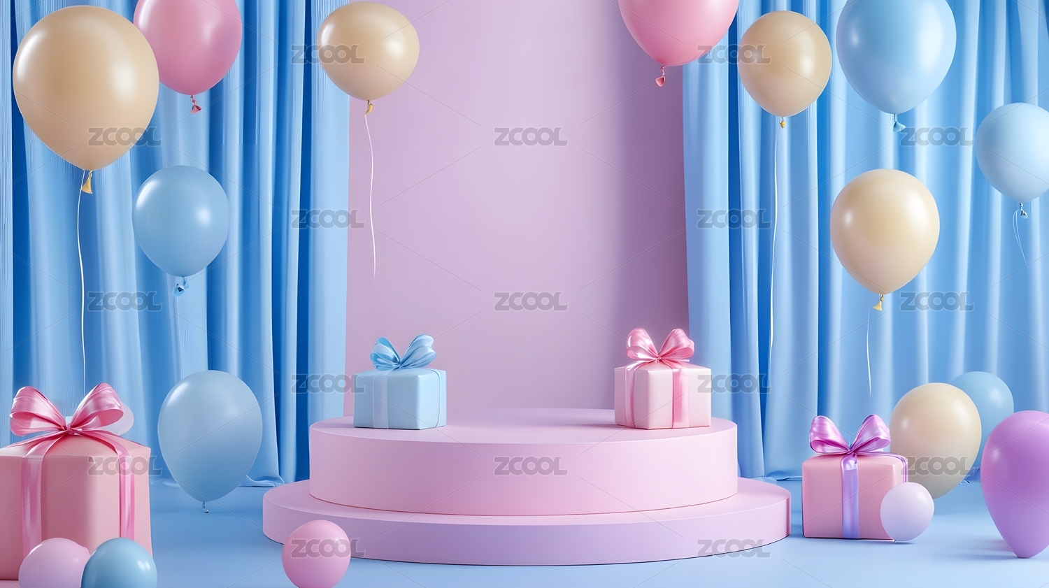 蓝色背景下的生日蛋糕和派对蛋糕的特写镜头