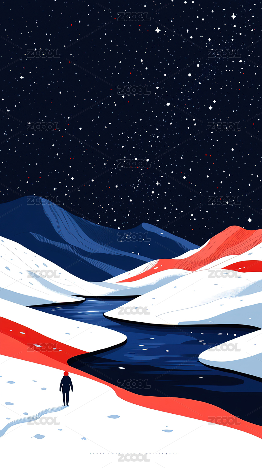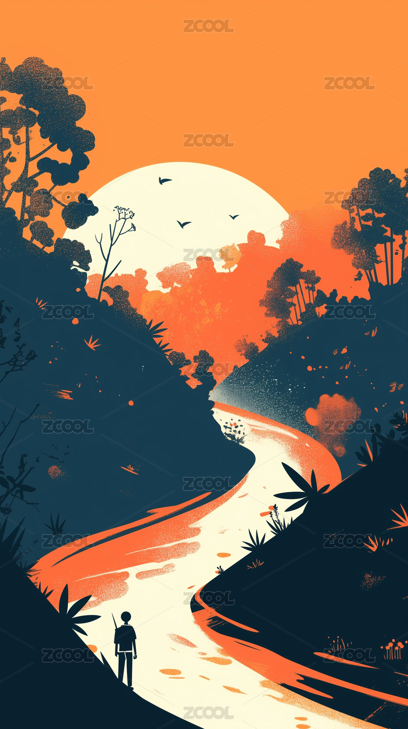 荒漠上孤独人影插画