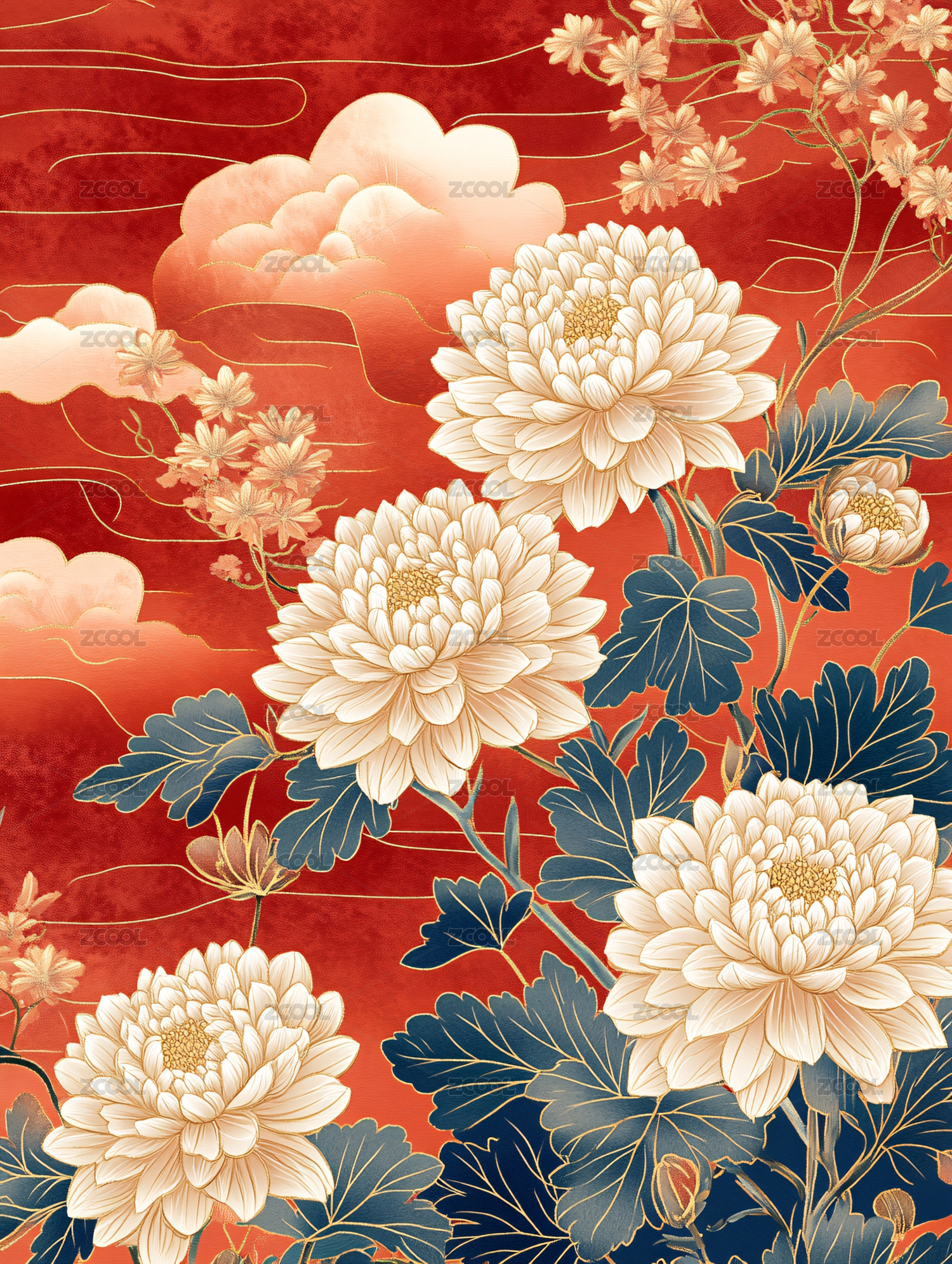 重阳时节美丽菊花插画重阳节中国风赏菊插图