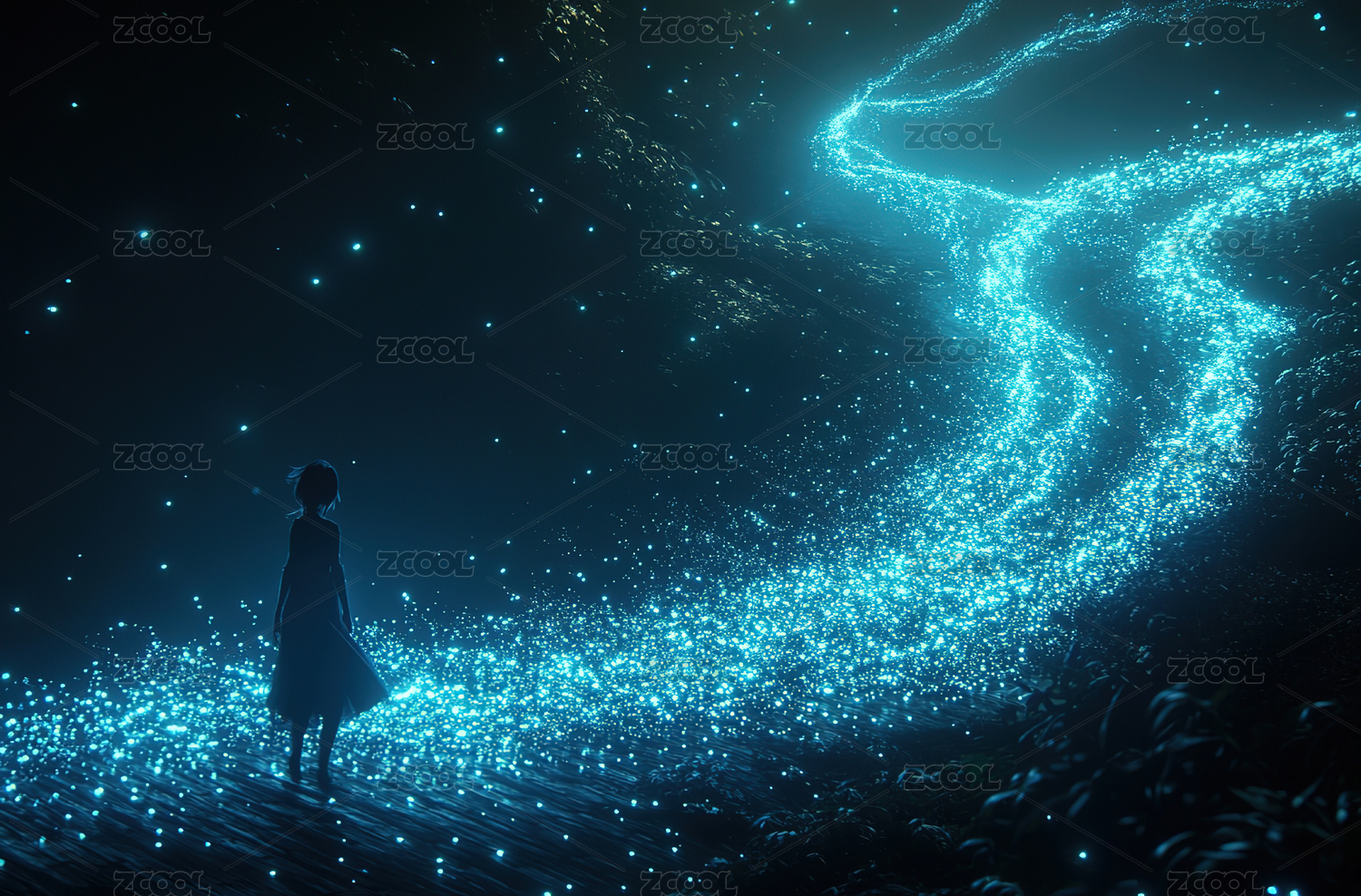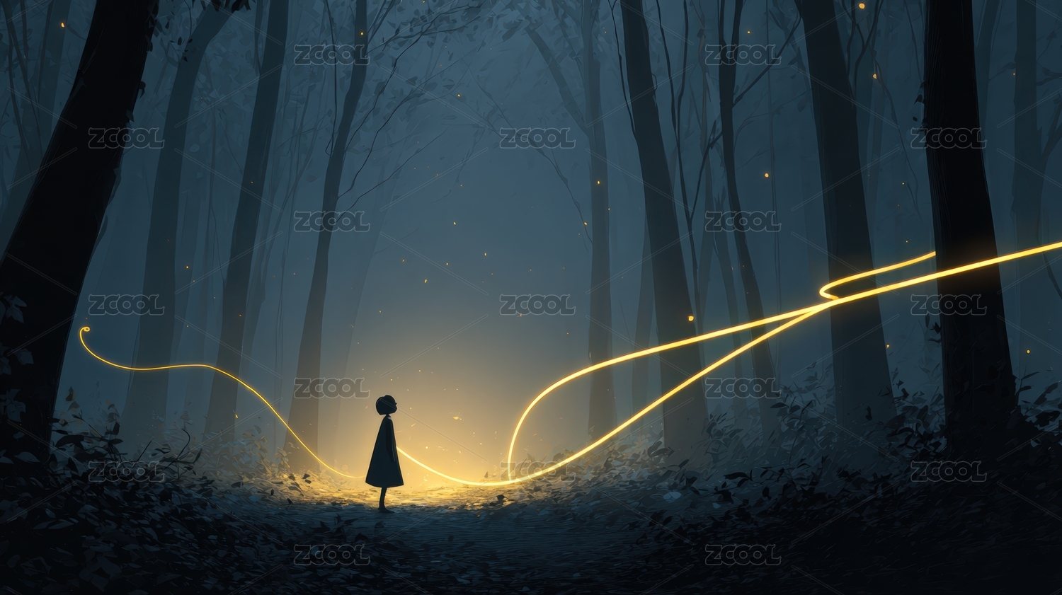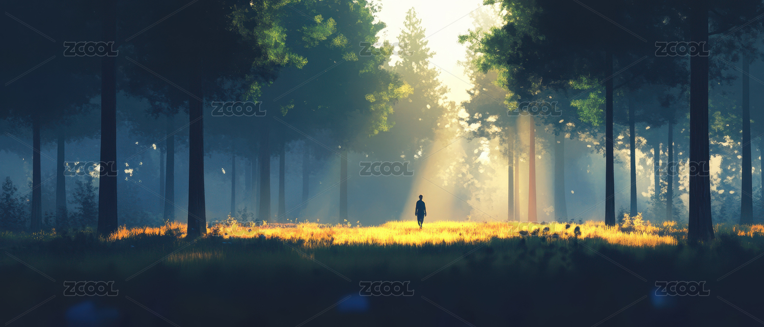 蓝色,绿色,宁静,树木,自然,树叶,冒险,梦幻,发光,少女