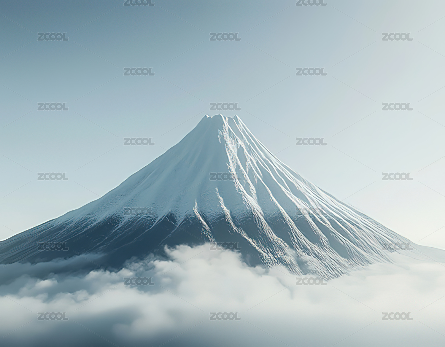 白雪皑皑的群山在晴朗的天空中俯瞰