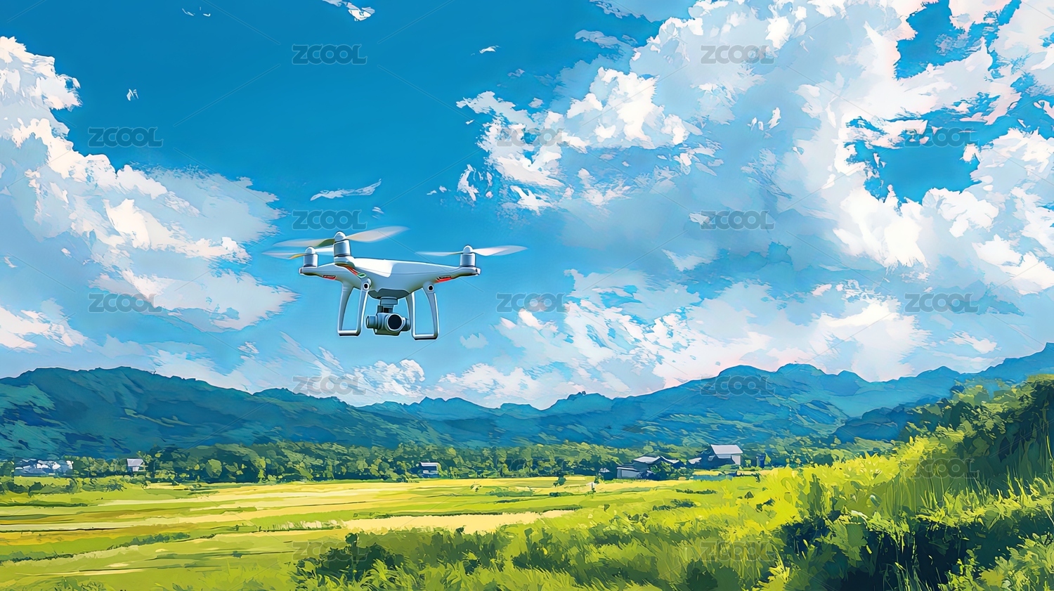 无人,田地,天空,地形,农作物,自然,风景,飞行器,飞,云