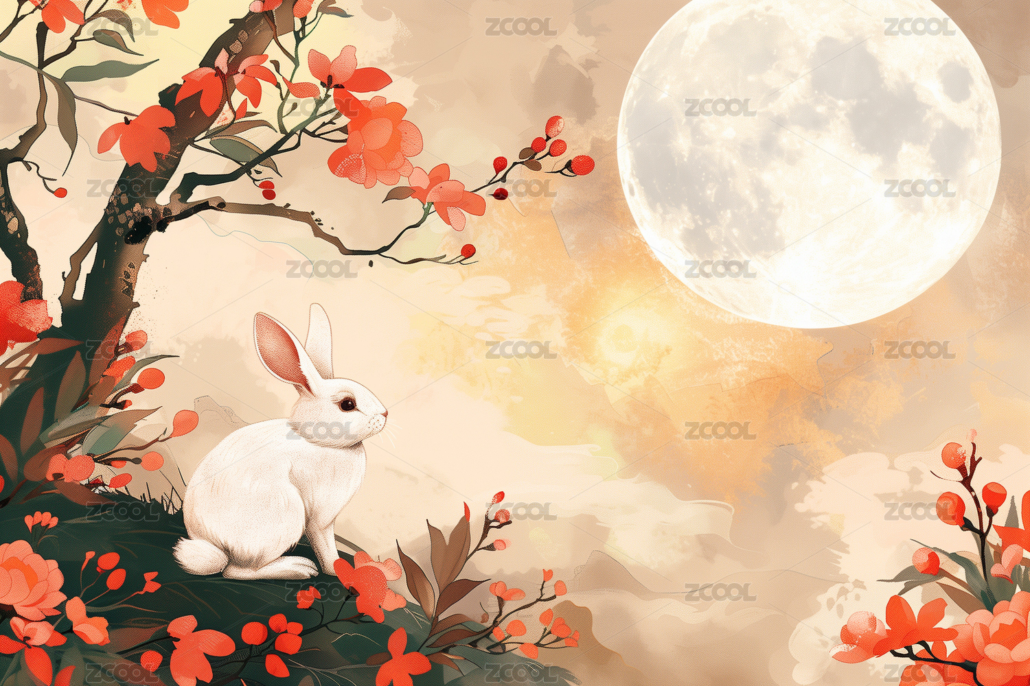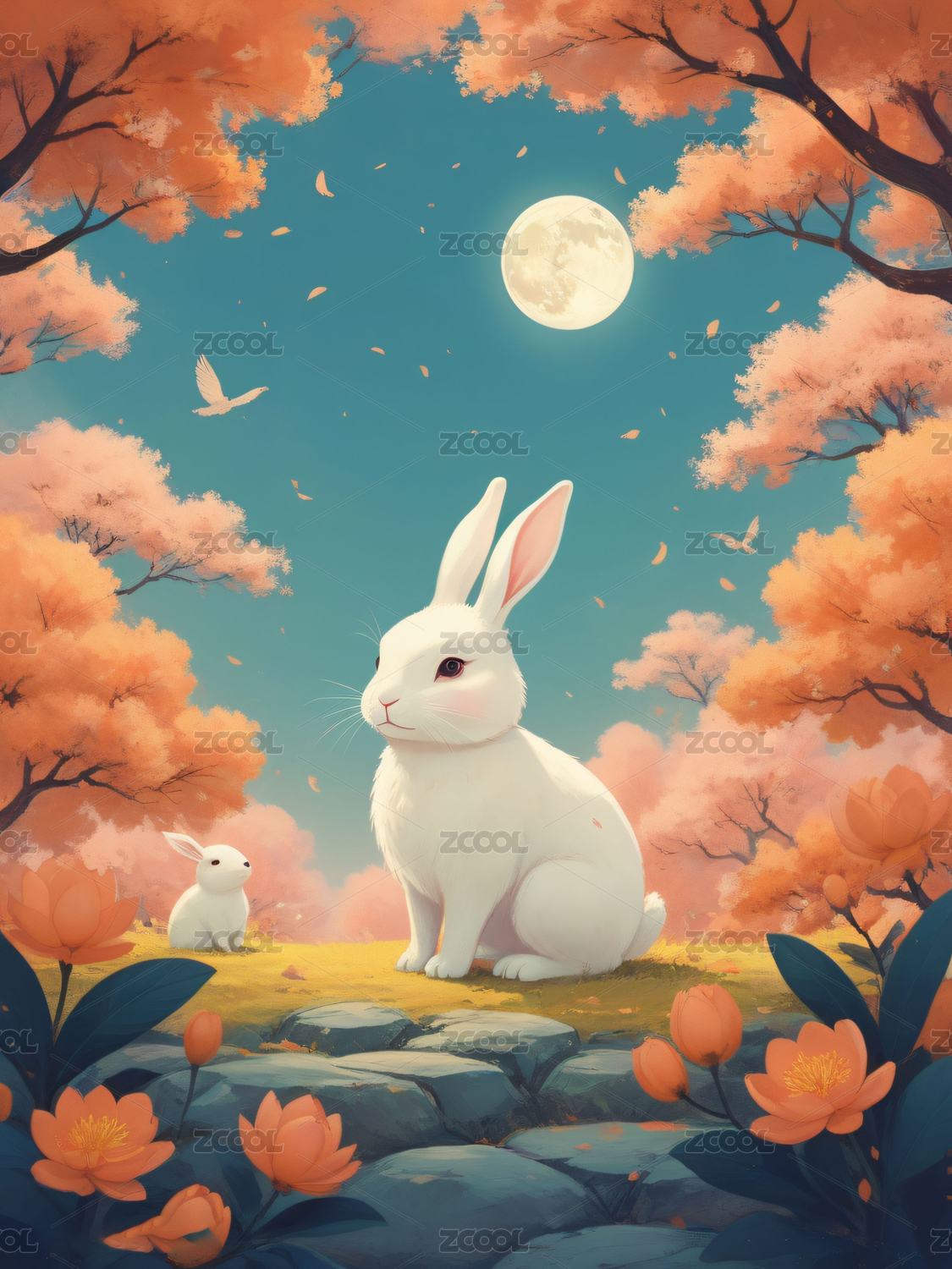 月亮,兔子,黄色,中秋,节日,AIGC202403,树,夜晚
