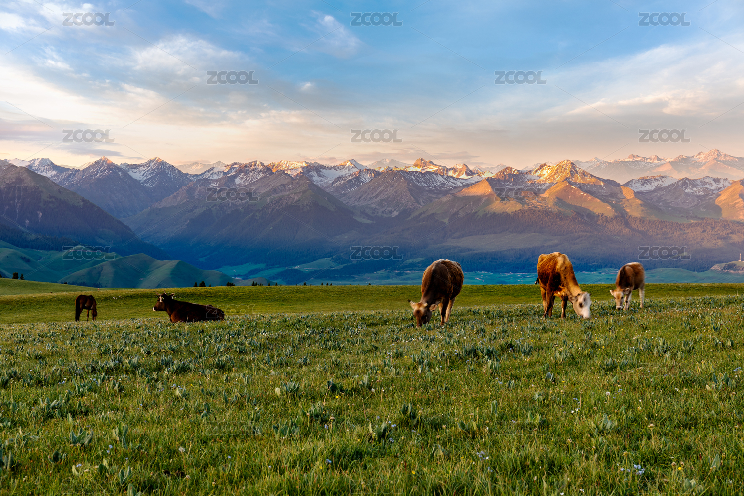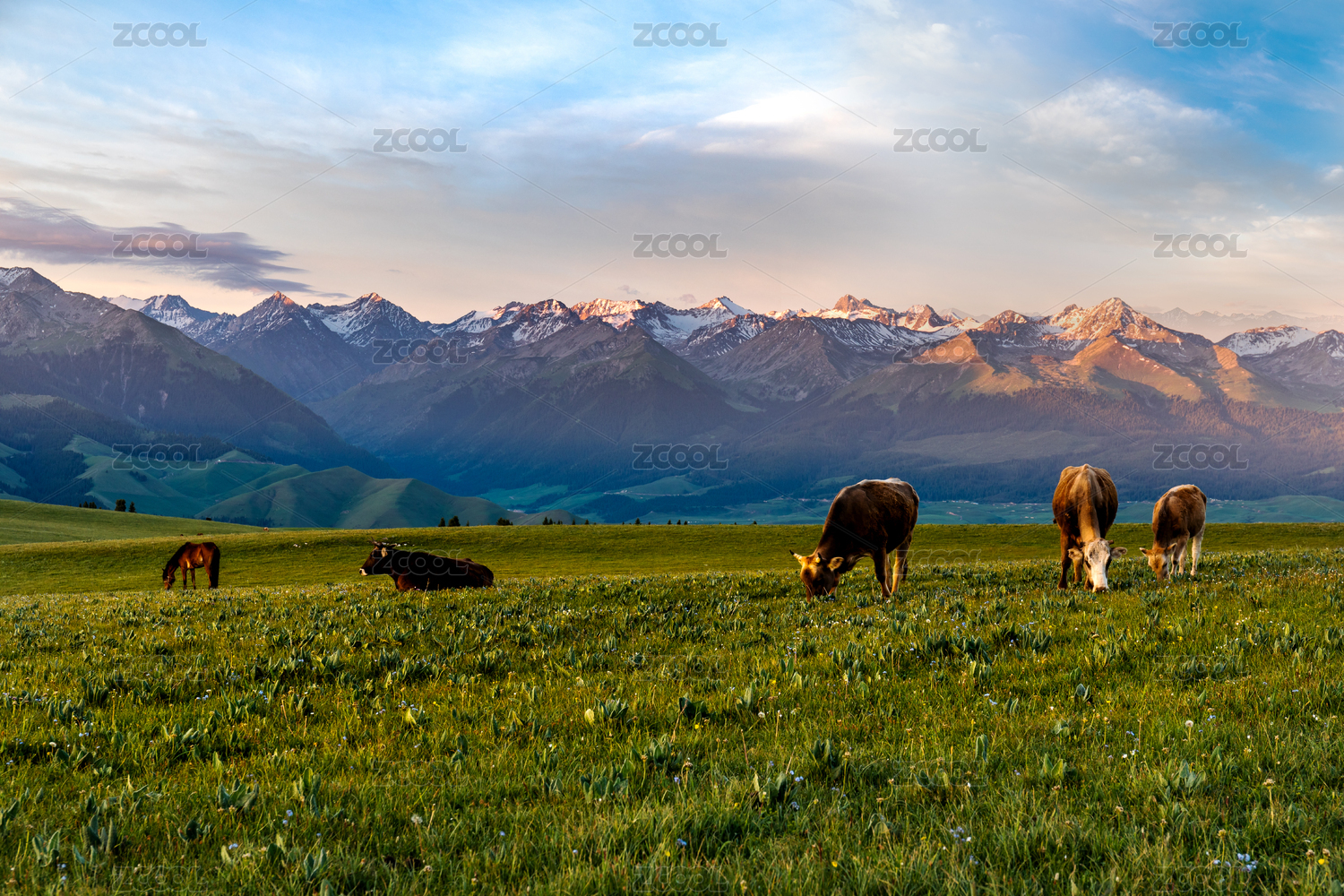 中国新疆伊犁喀拉峻草原牧场自然风光