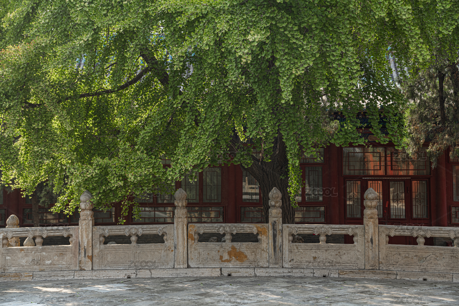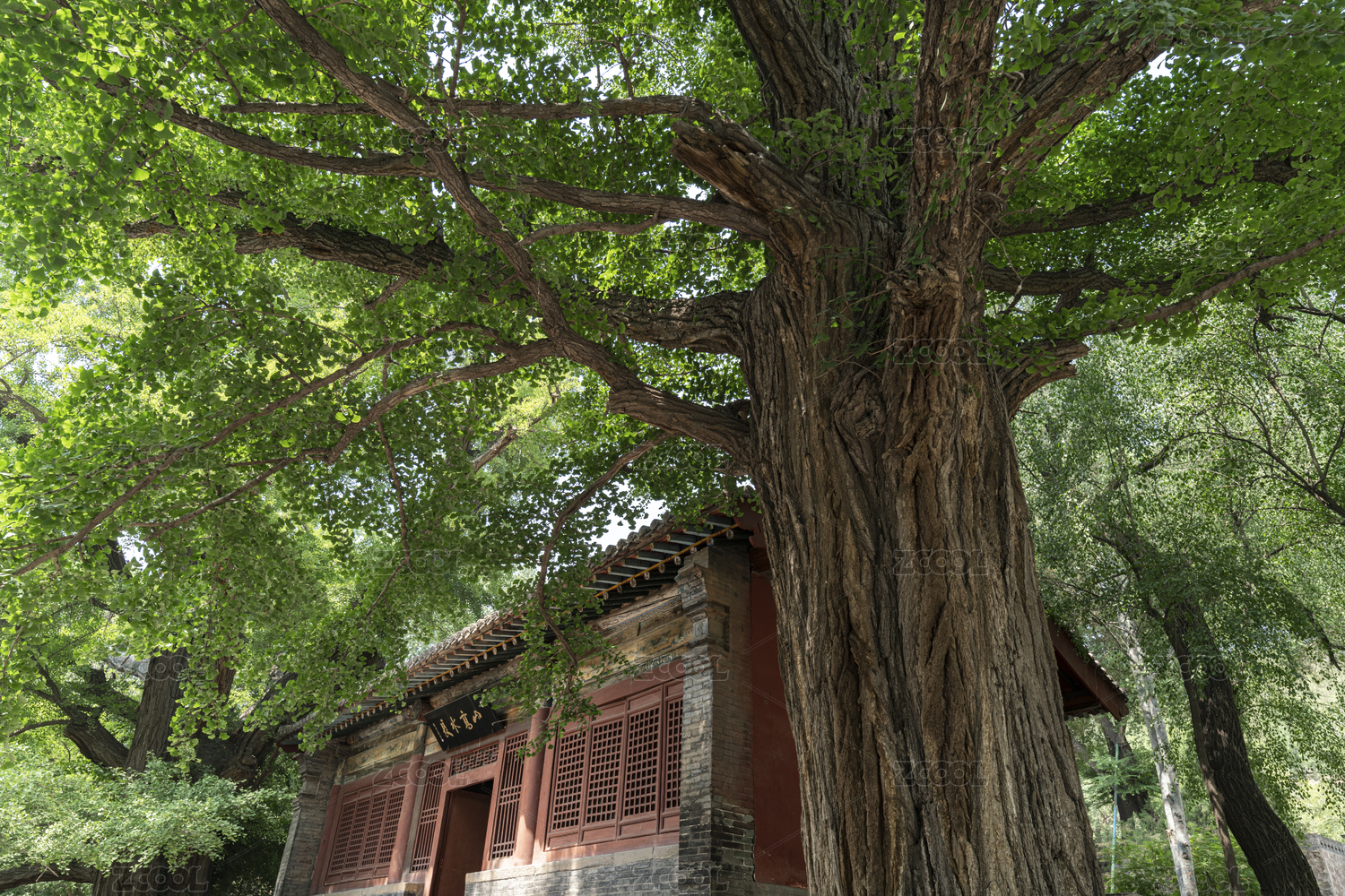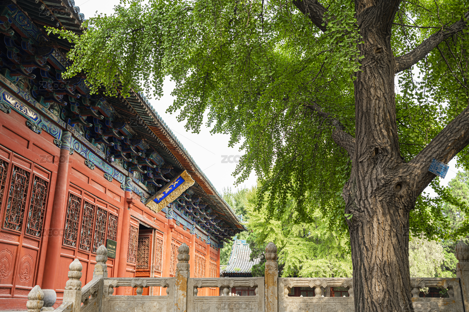 中国山西省太原文庙大成殿旁的古老银杏树