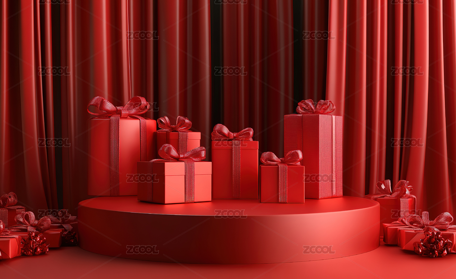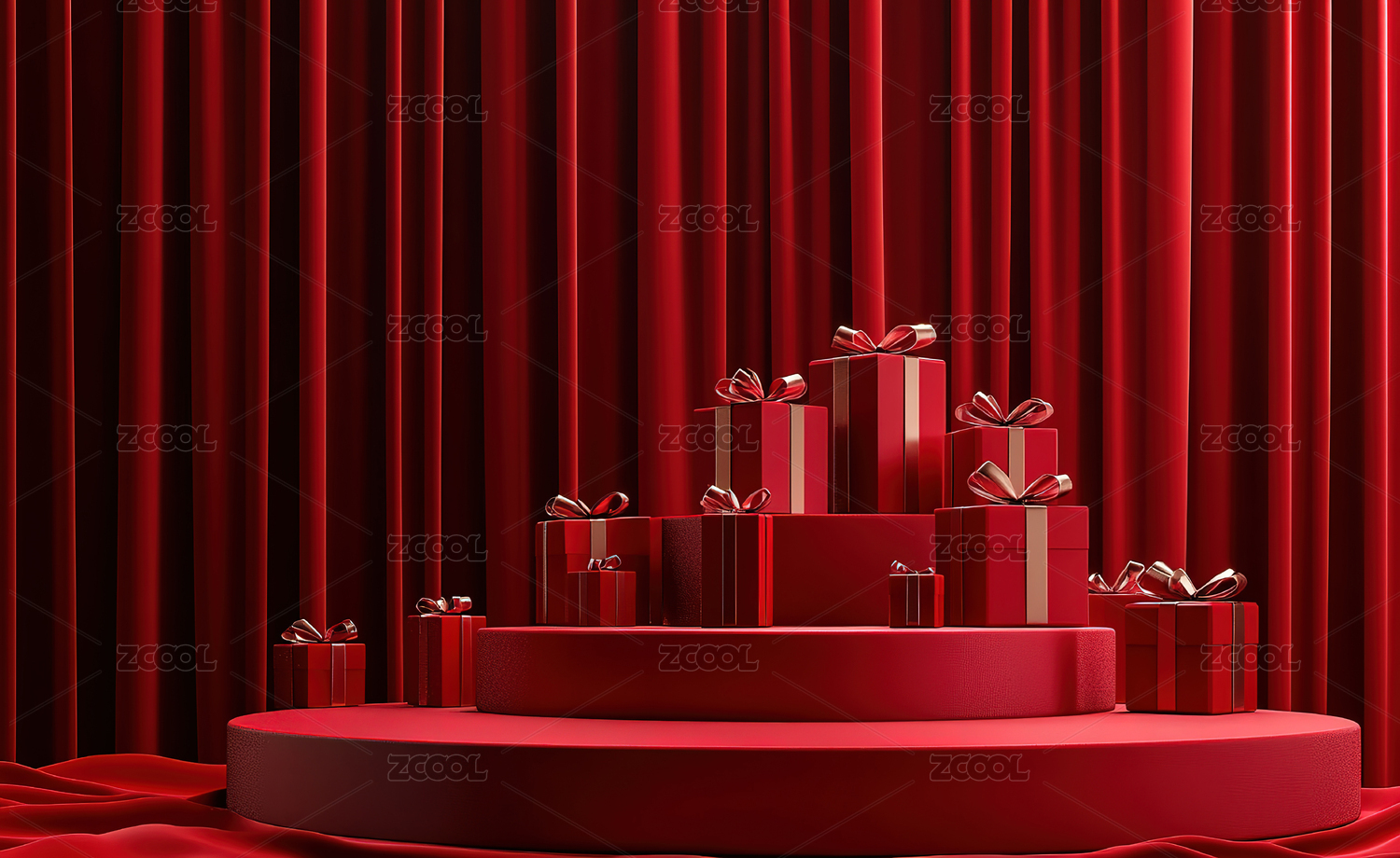无人,红色,典礼,舞台,三维图形,室内,电子商务,AI数字艺术,窗帘,高雅