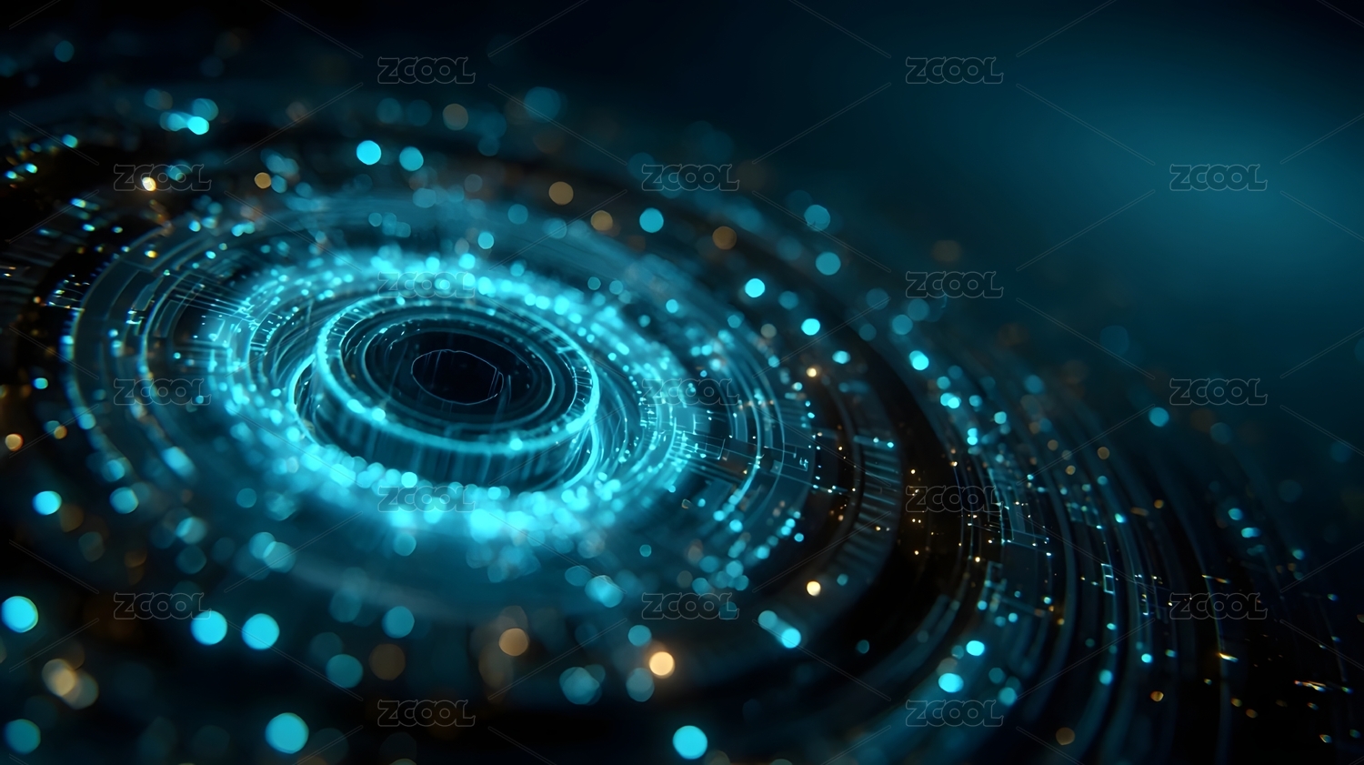 蓝色科技全息抽象霓虹光效粒子光纤圆背景