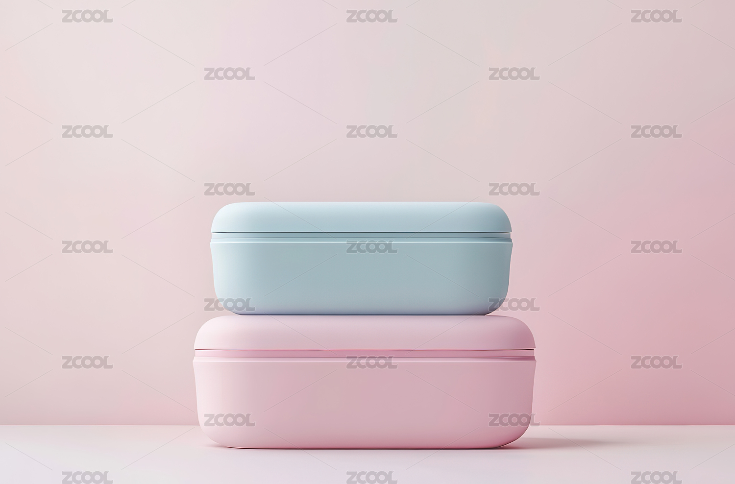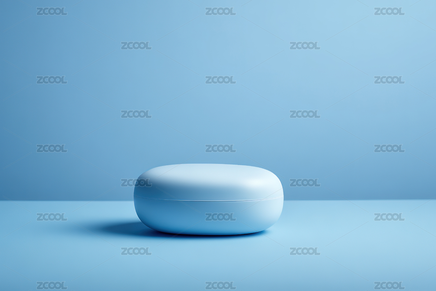 蓝色背景下桌子上的蓝色容器的特写镜头