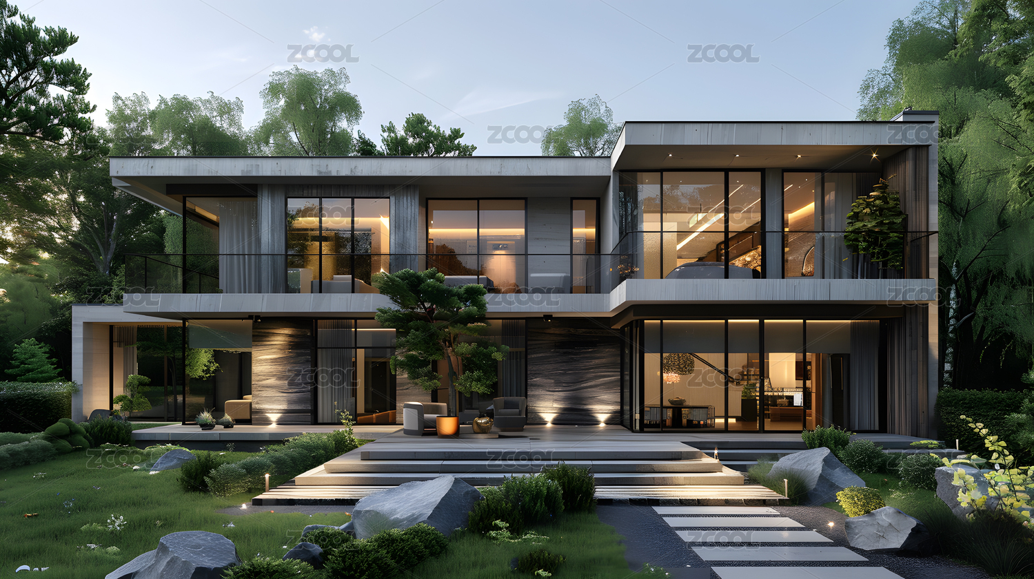 现代豪华别墅夜景主题