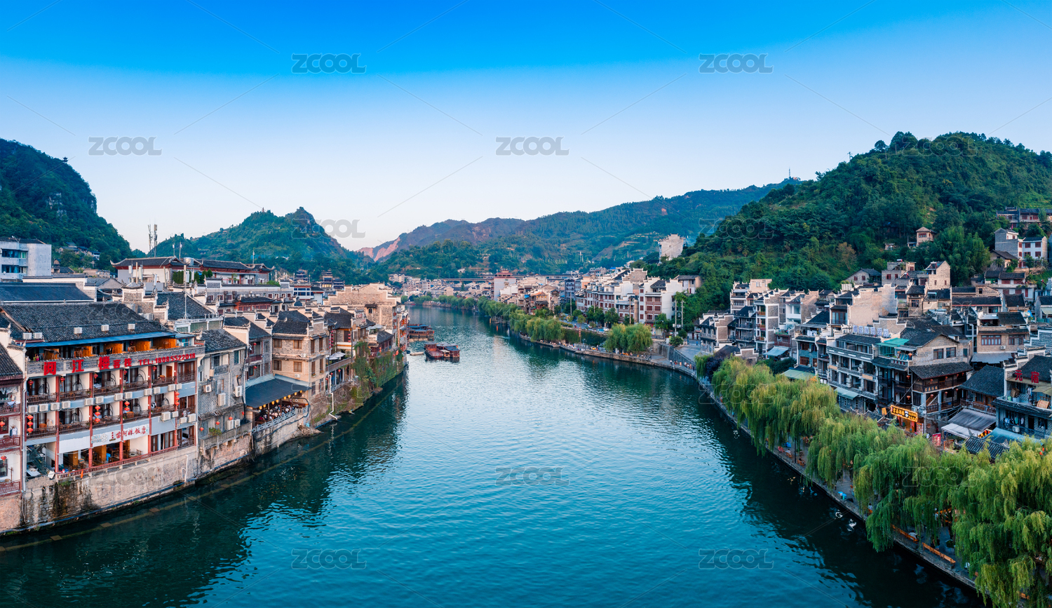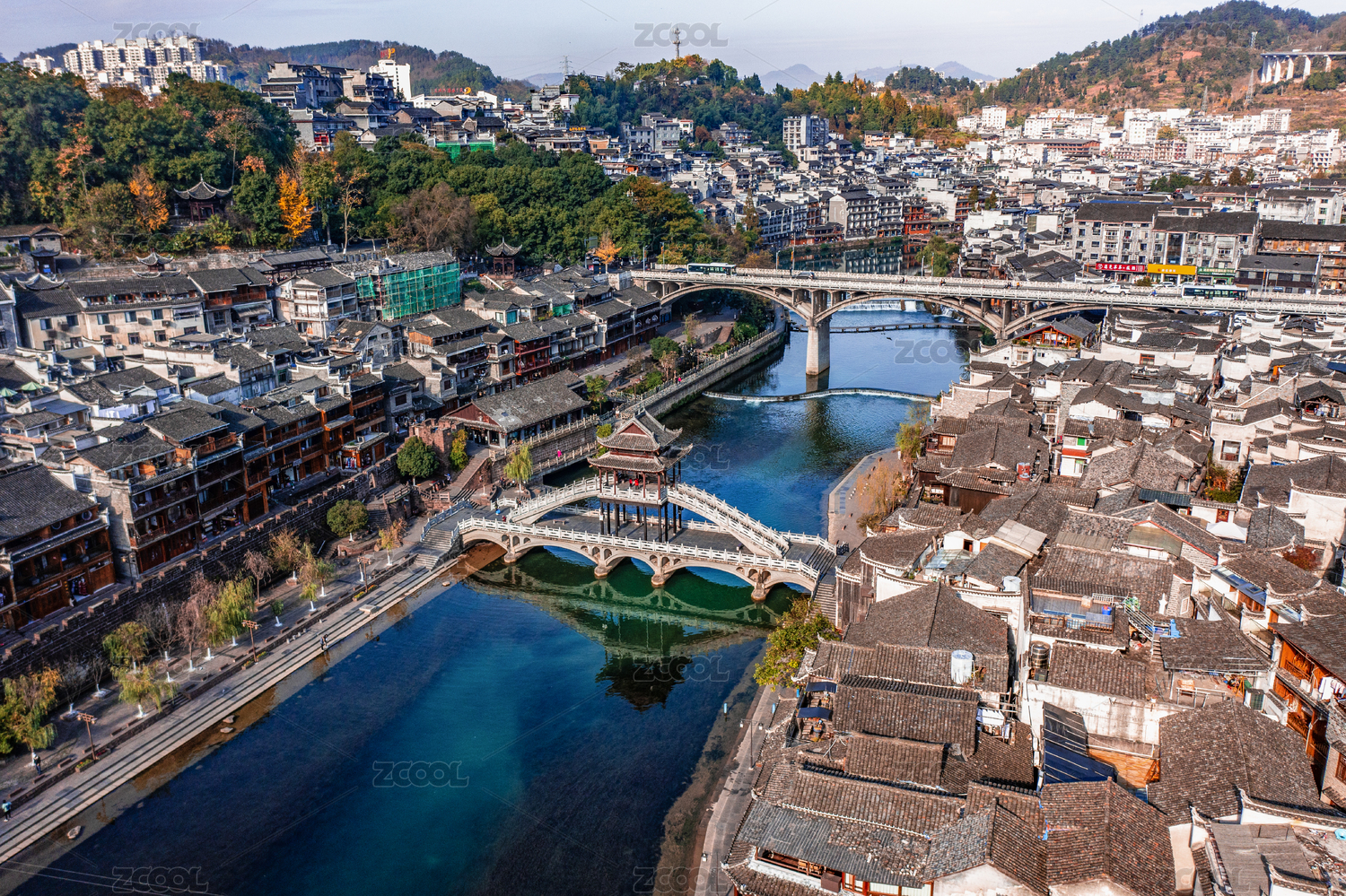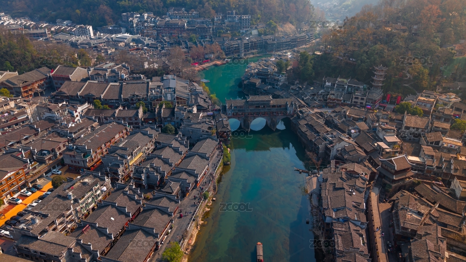 湖南湘西凤凰古城,古镇水乡航拍全景