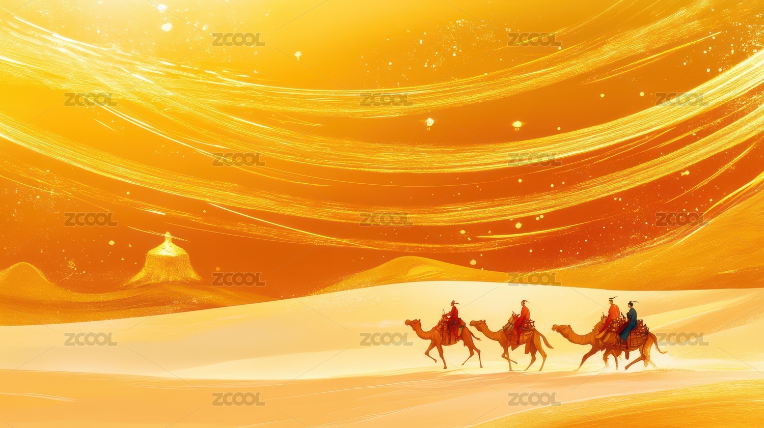 沙漠,骆驼,商队,沙丘,金色,骆驼队,敦煌,驼队,画风,插图