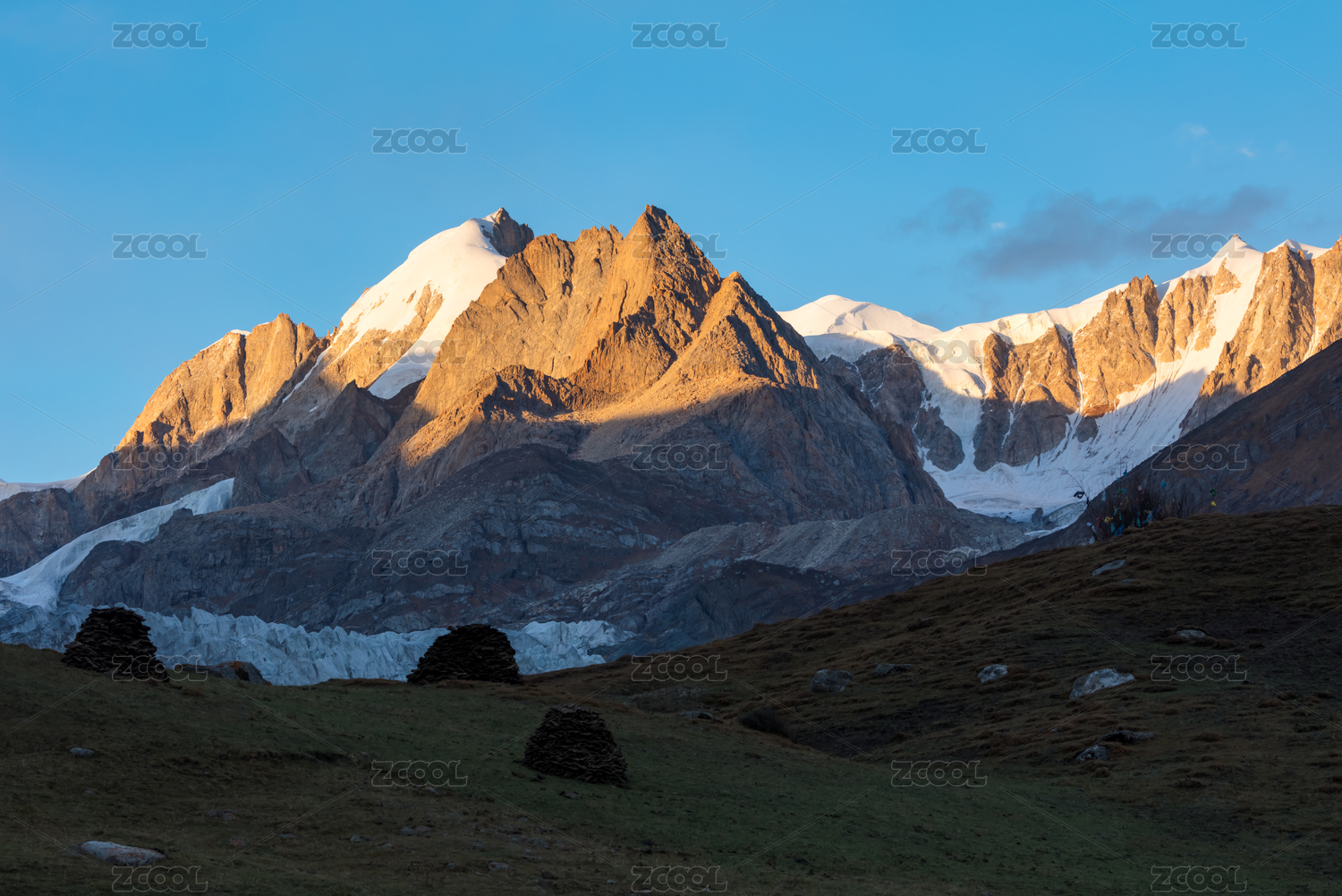 西藏,那曲,索县,穹雄沟,日落,冰川,夕阳,天空,牛粪堆,金黄色