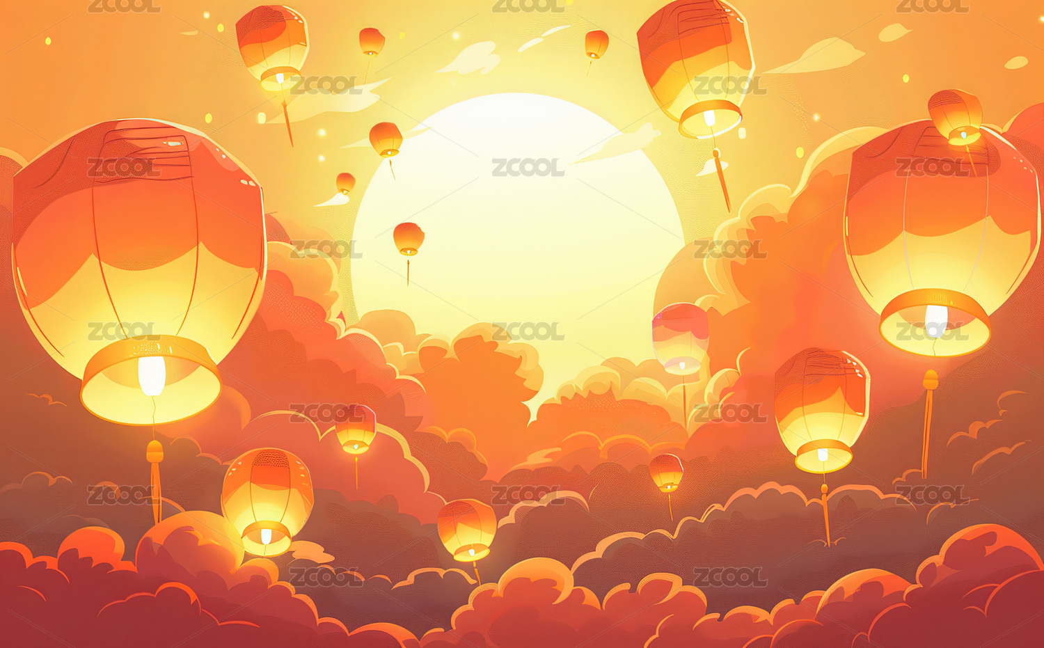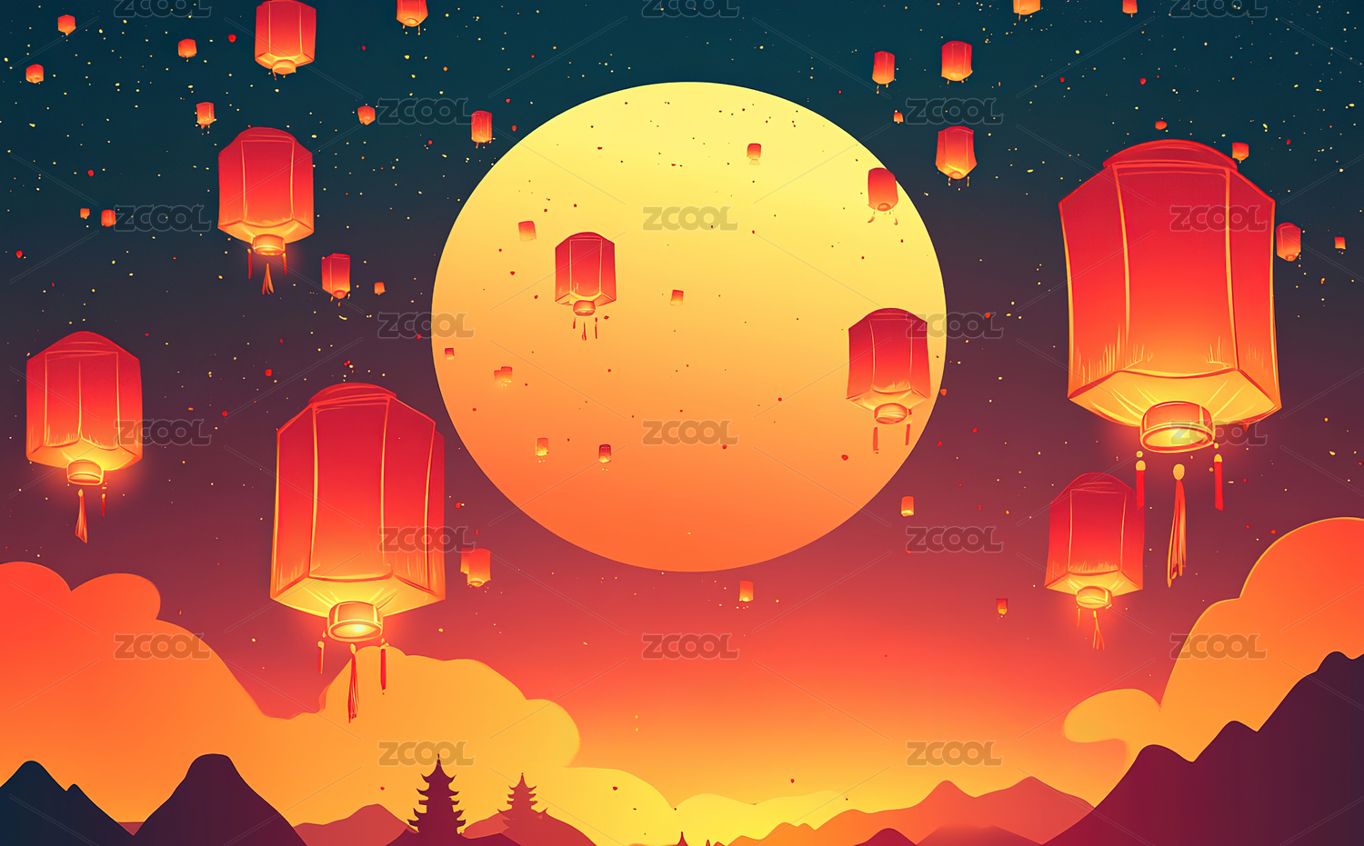 中秋佳节圆圆的月亮,灯笼高高挂起