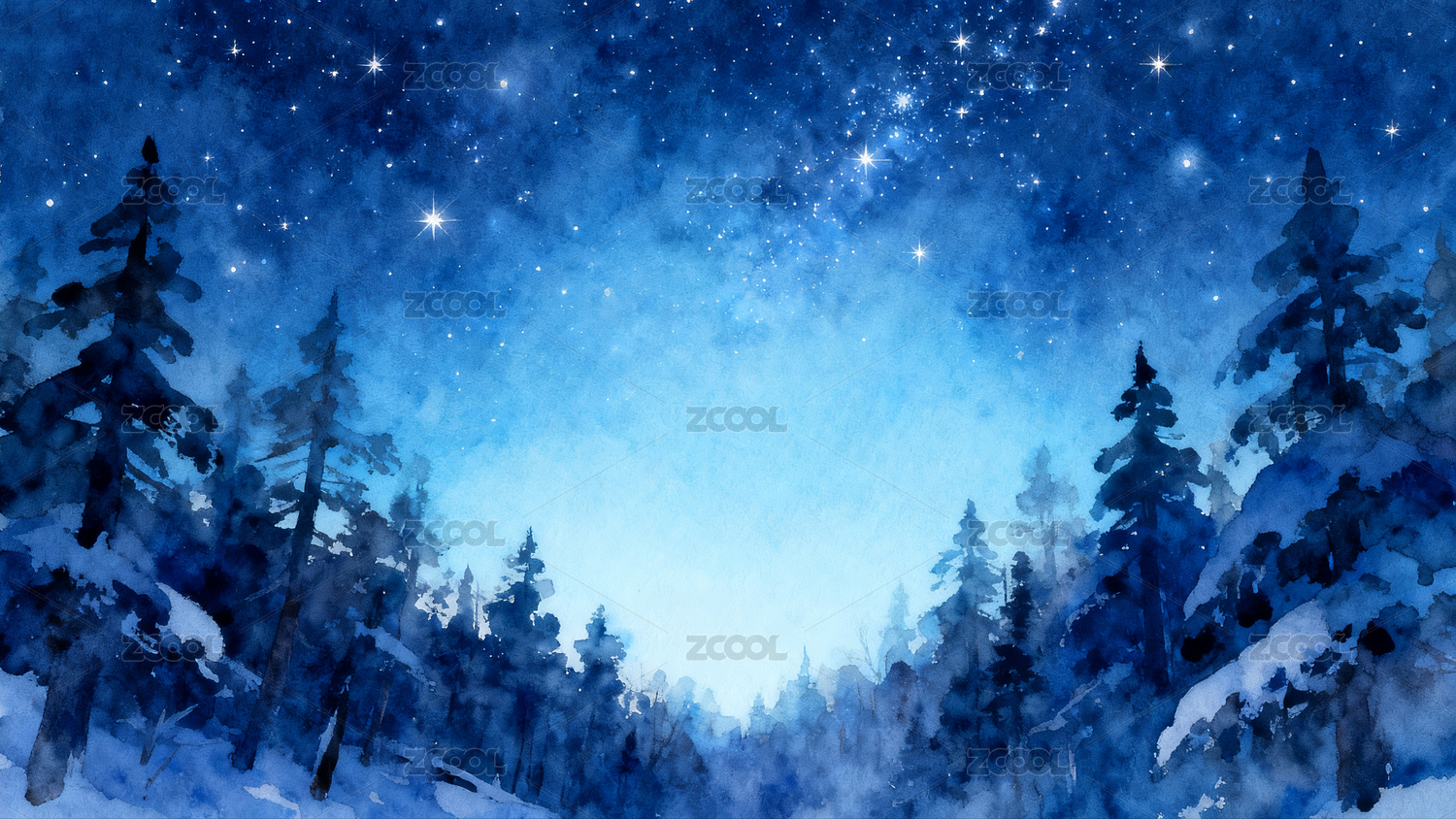 冬夜星空下的雪林