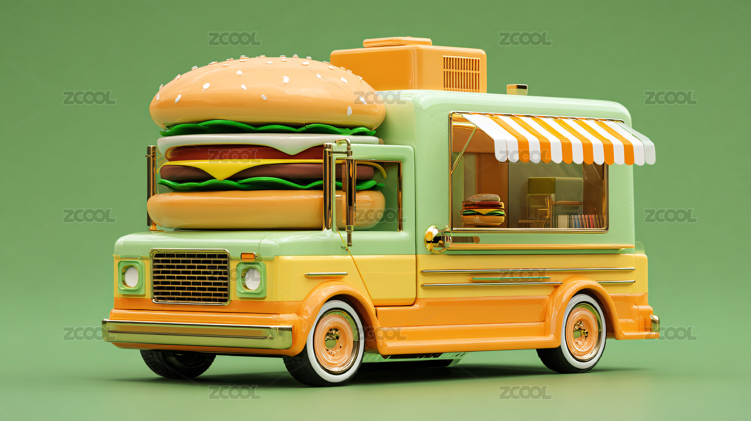 卡通,可爱,交通工具,机械,快餐,快餐车,热狗,咖啡,雪糕,汉堡