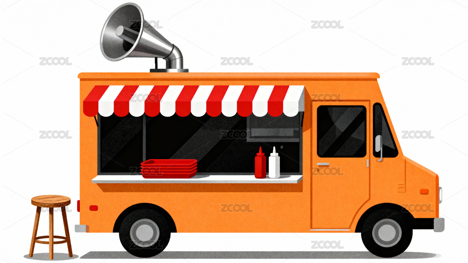 橙色餐车带喇叭售卖食物