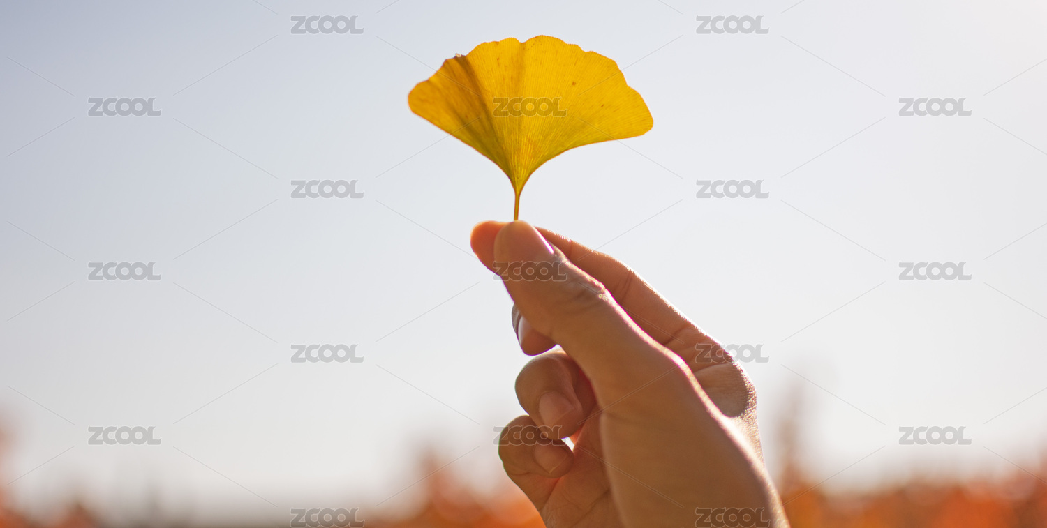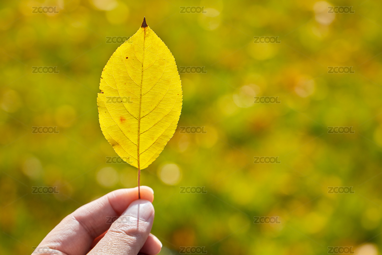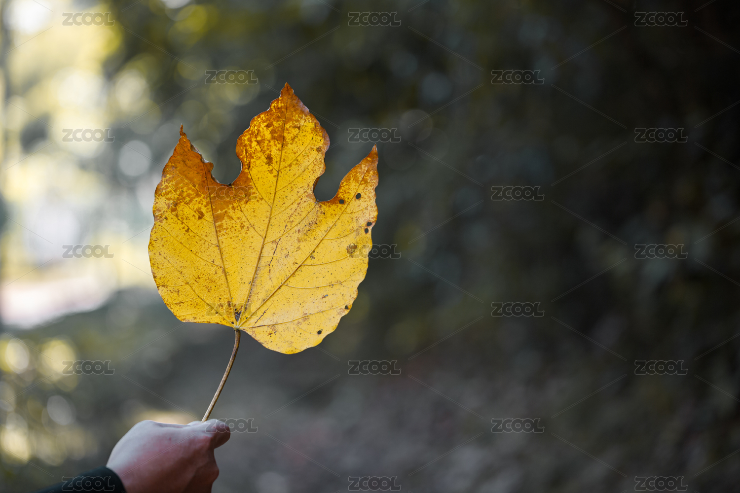 坡峰岭秋意正浓,一只手拿着一张枫叶