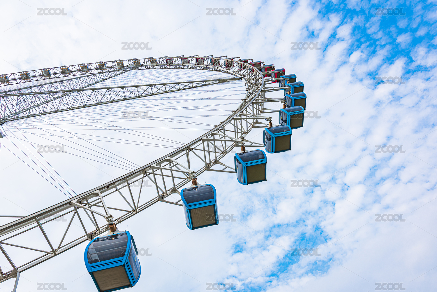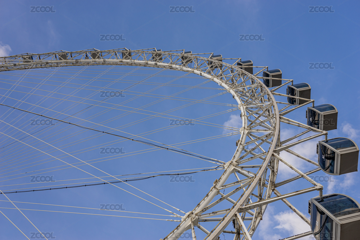 厦门海上世界摩天轮在蓝天下的壮观景象
