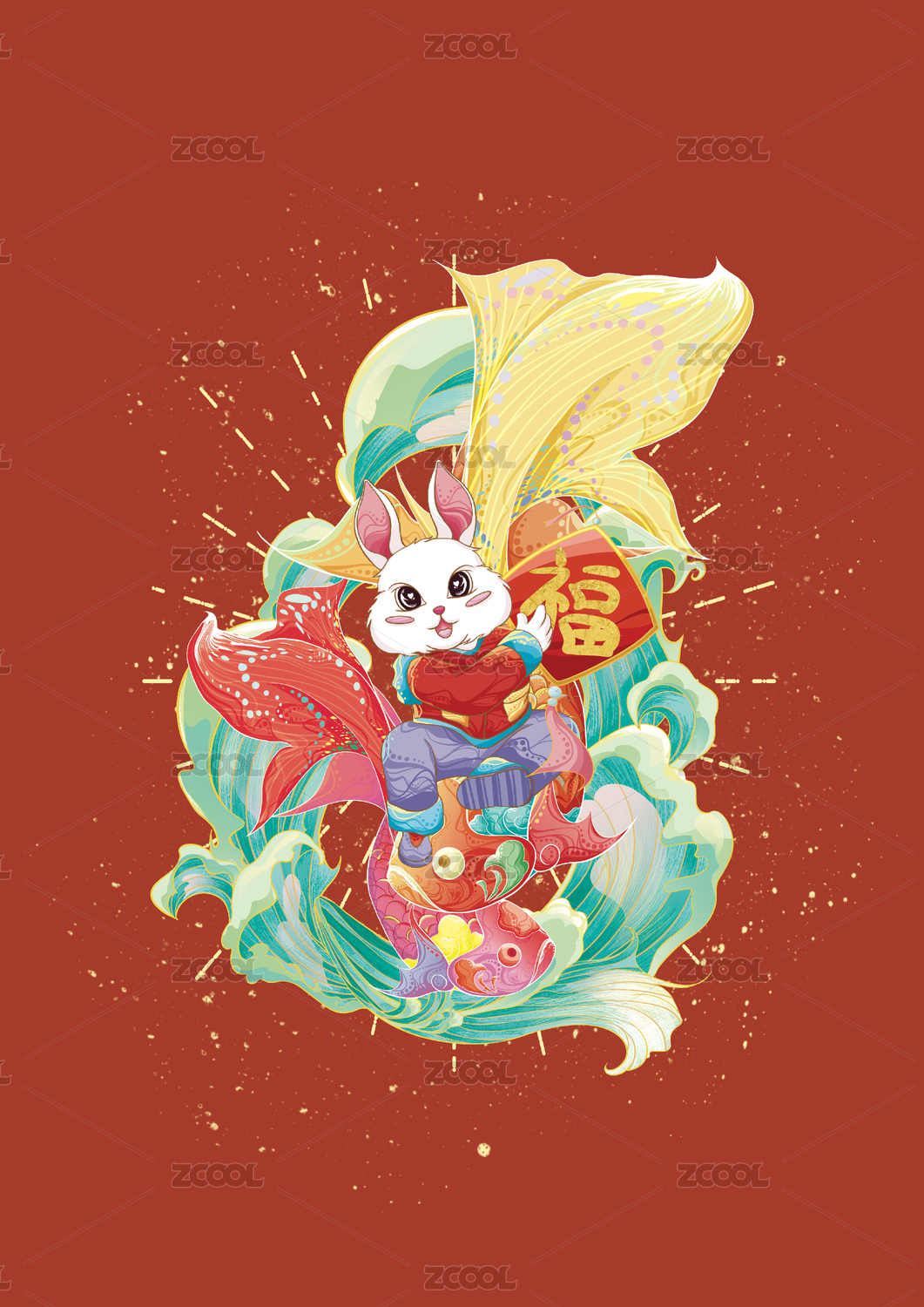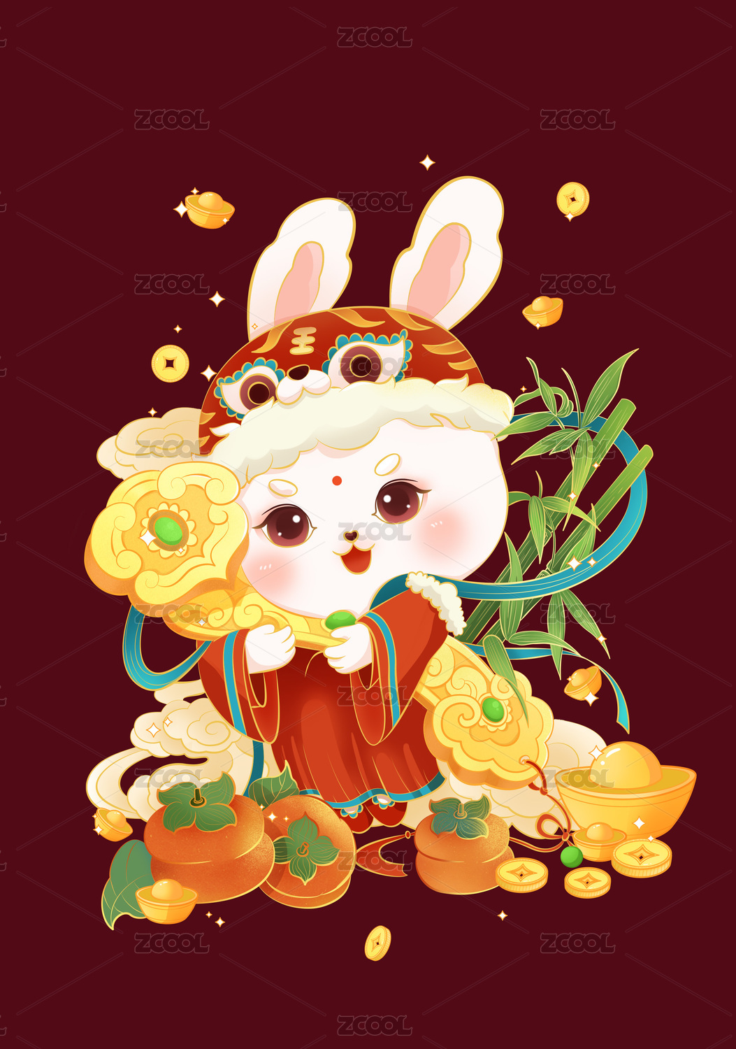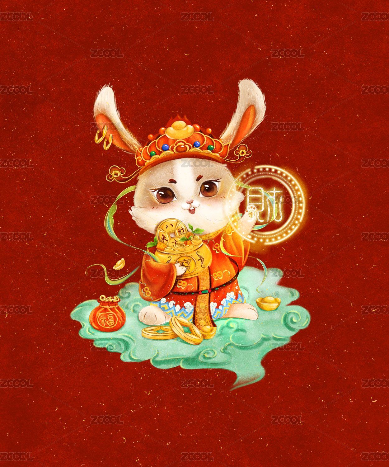 国风,财神,HEKMDTK202211,春节,兔年,兔子,吉祥,如意,新春,财富