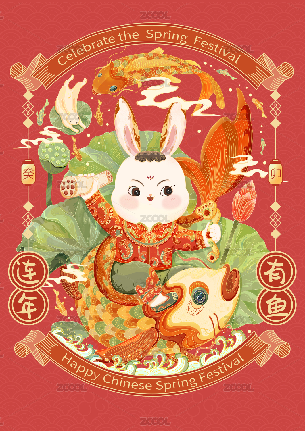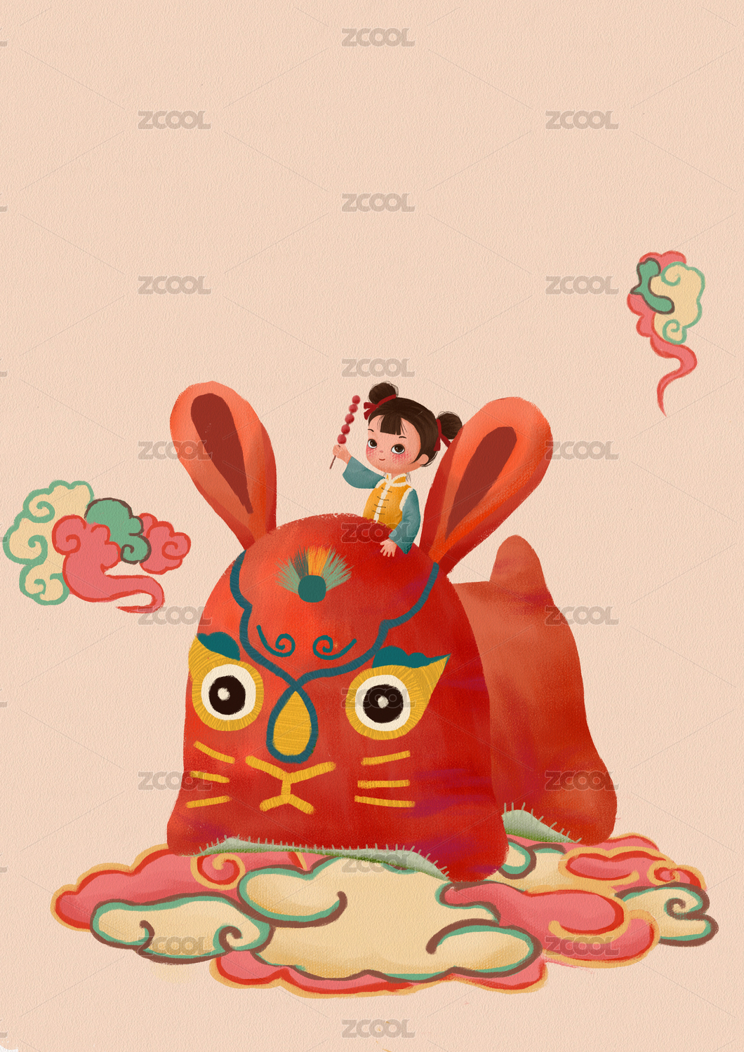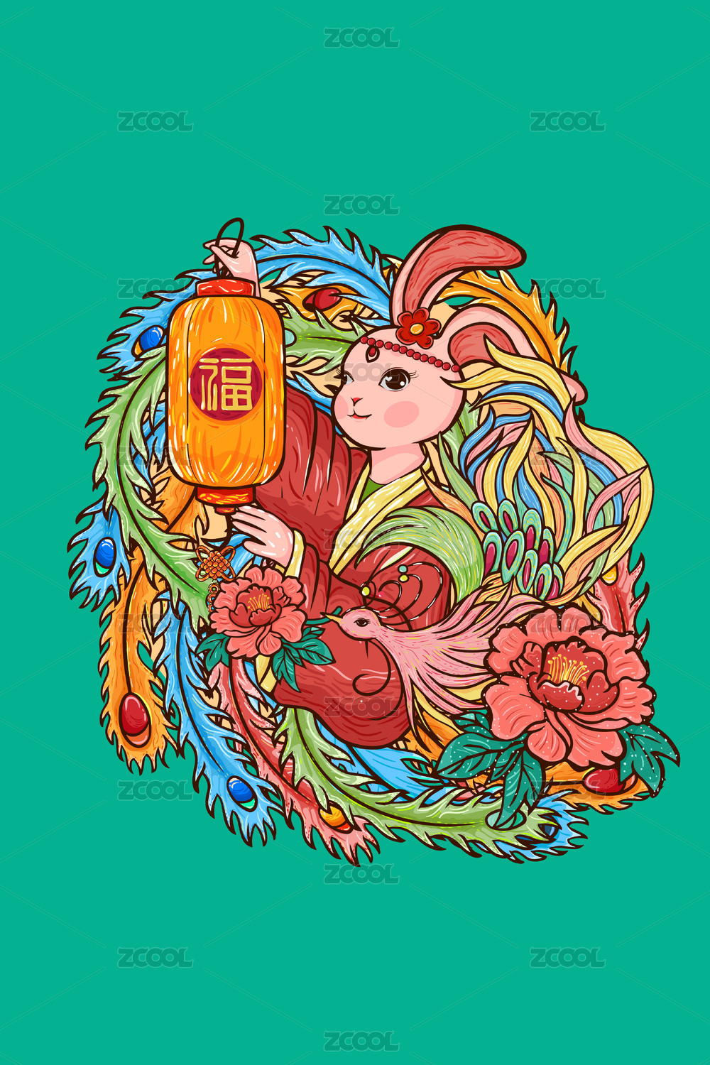 国风,财神,HEKMDTK202211,春节,兔年,兔子,吉祥,如意,新春,财富