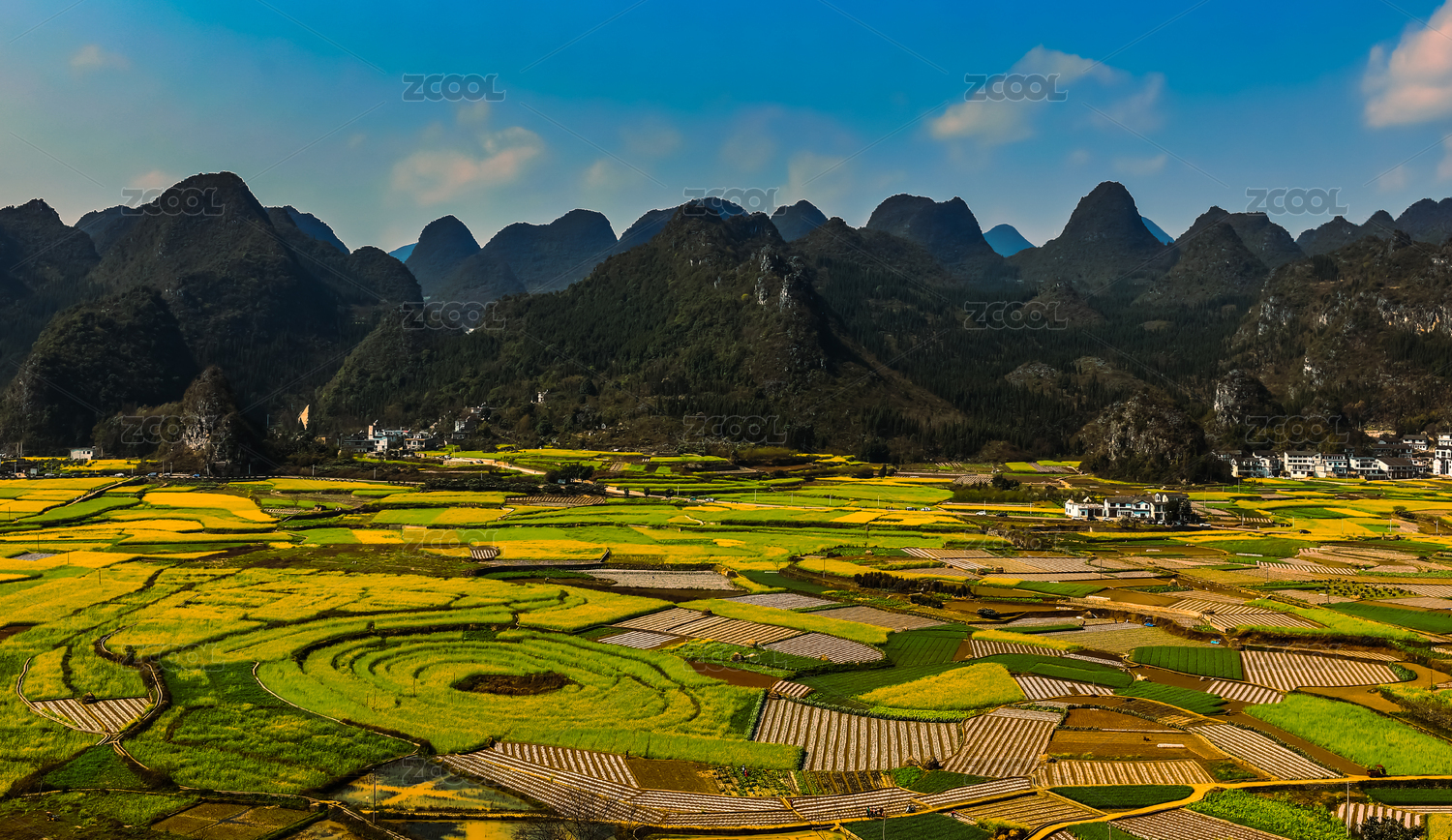 贵州兴义万峰林八卦田春天油菜花盛开景色