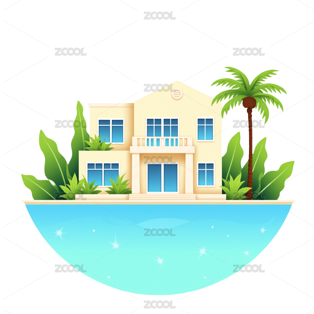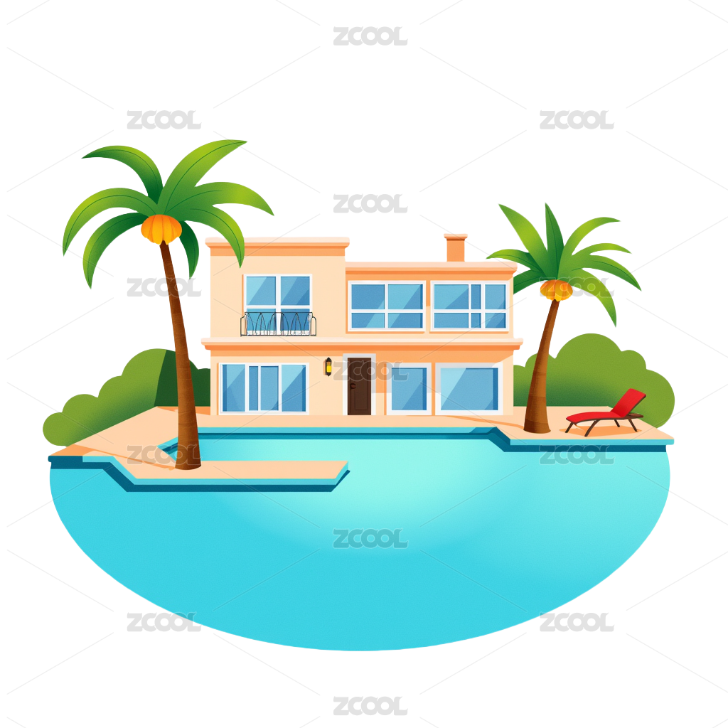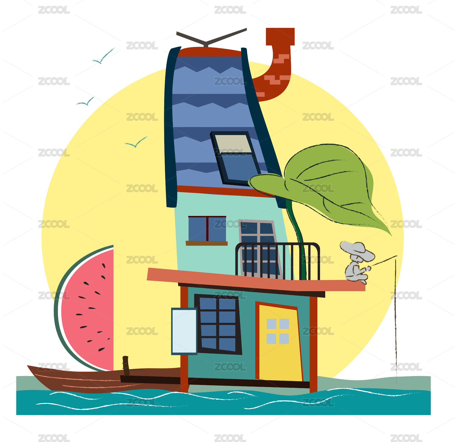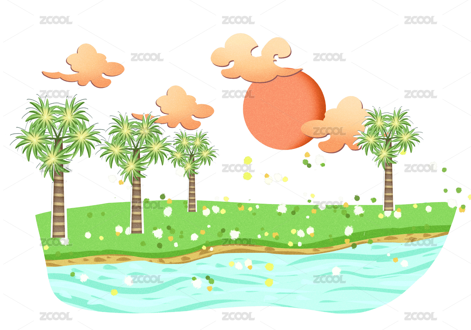 元素,素材,插画风格,水上乐园,滑滑梯,儿童乐园,避暑胜地,降温,避暑