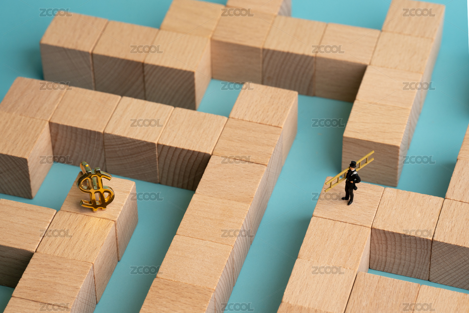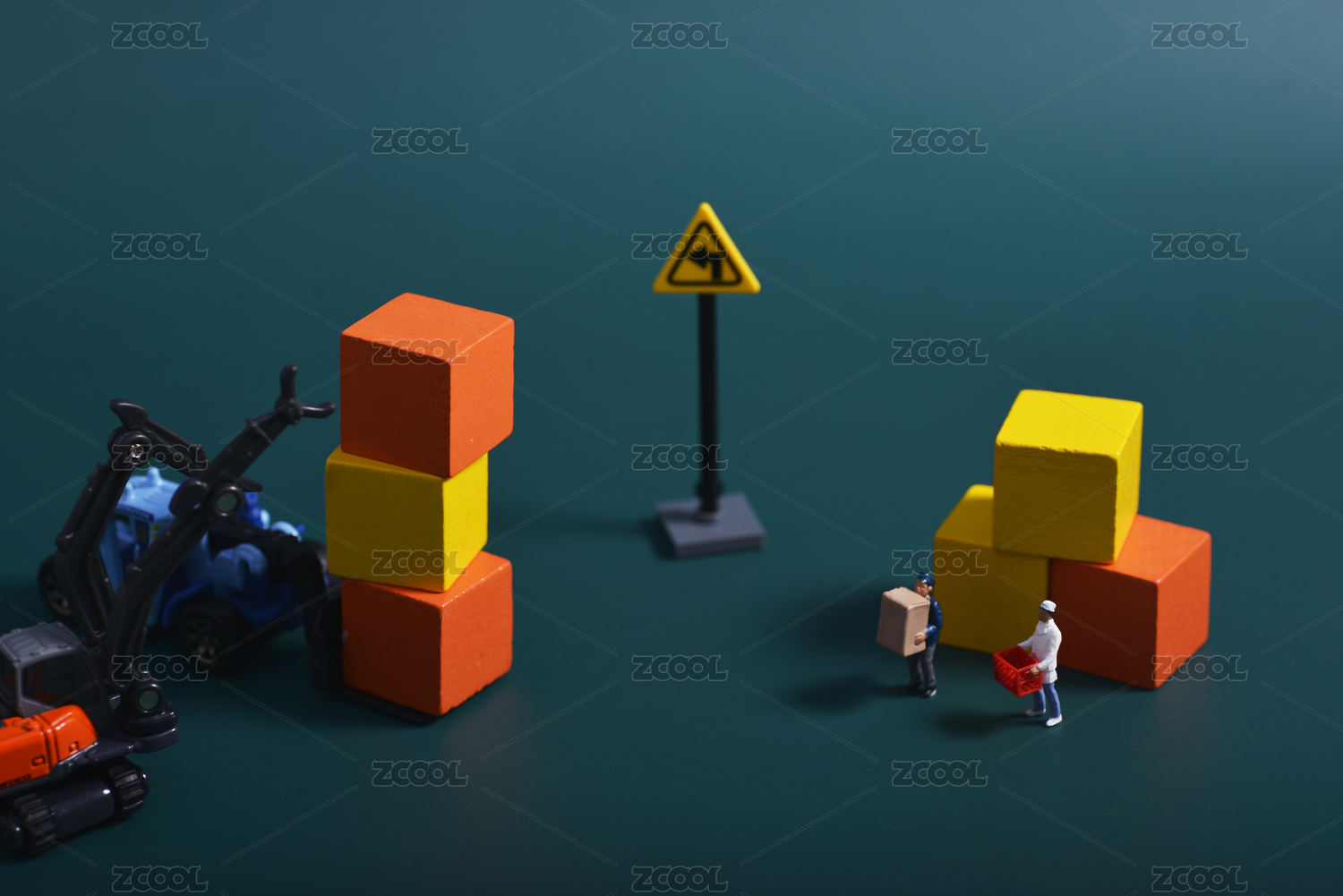 微缩创意拼合马卡龙色俄罗斯方块的工人