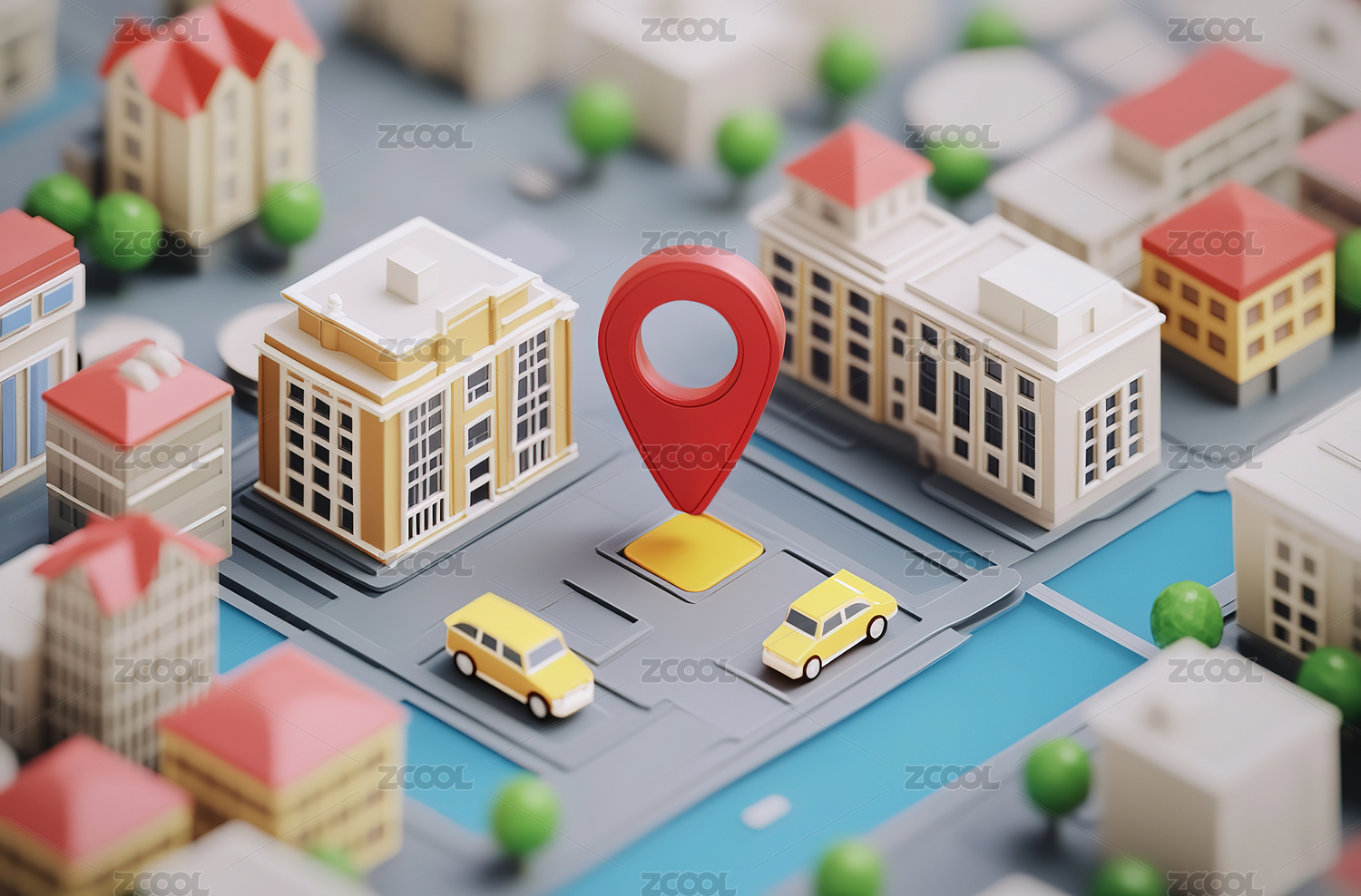 卡通风格的微型城镇场景