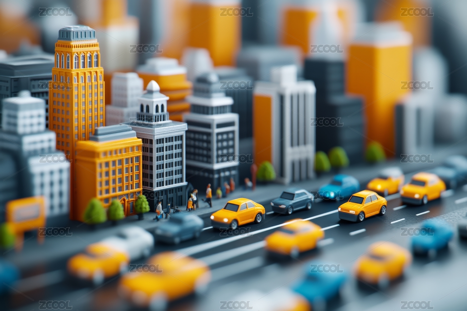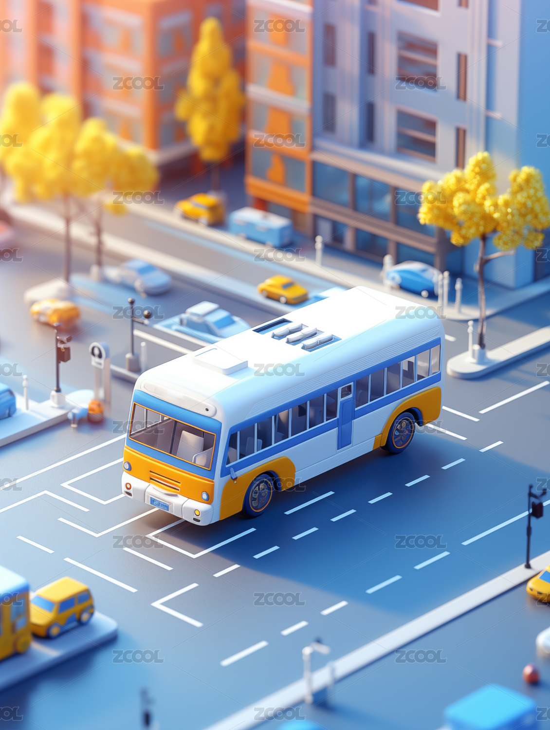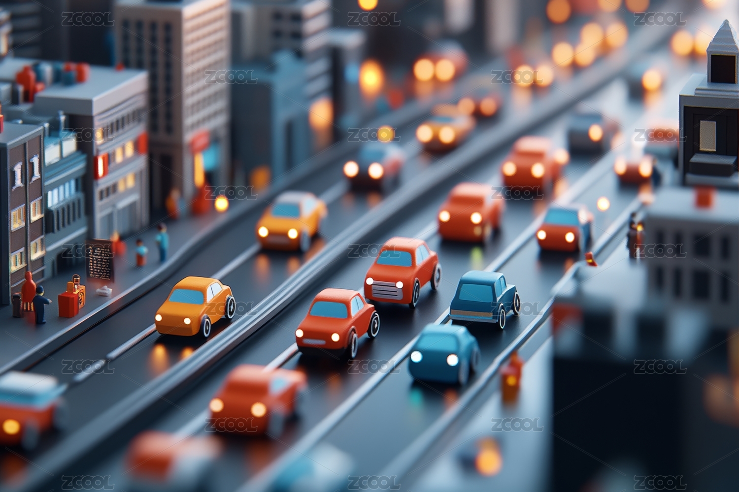 3D城市交通公路汽车街道车辆三维模型插画
