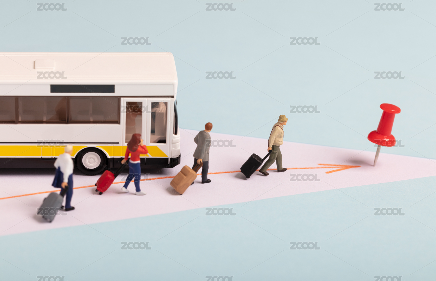 微缩创意旅游大巴上的游客到达目的地