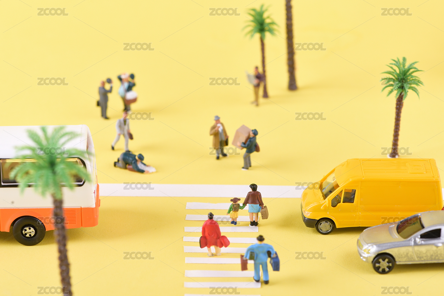 糖果色,城市,交通,行人,斑马线,微缩,可爱,过马路,车辆,汽车