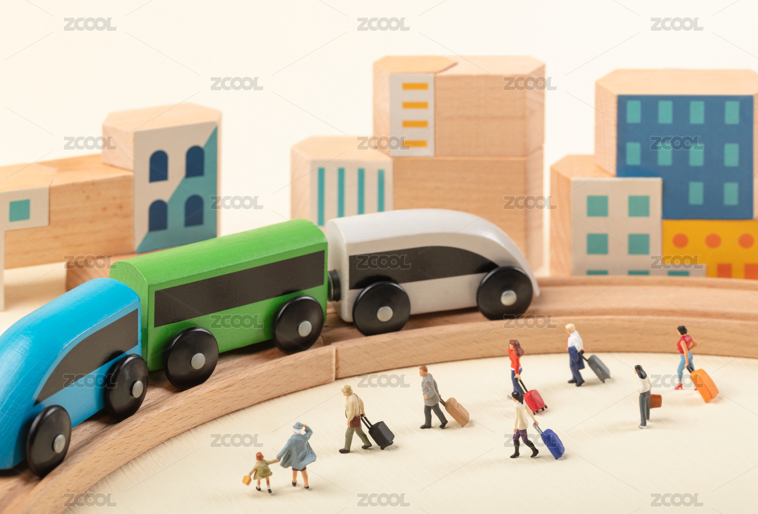 微缩创意火车出行与城市旅行的游客