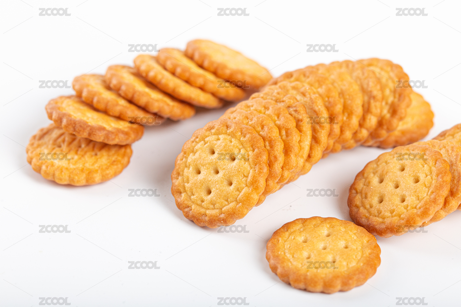 白色背景上摆放的零食小饼干