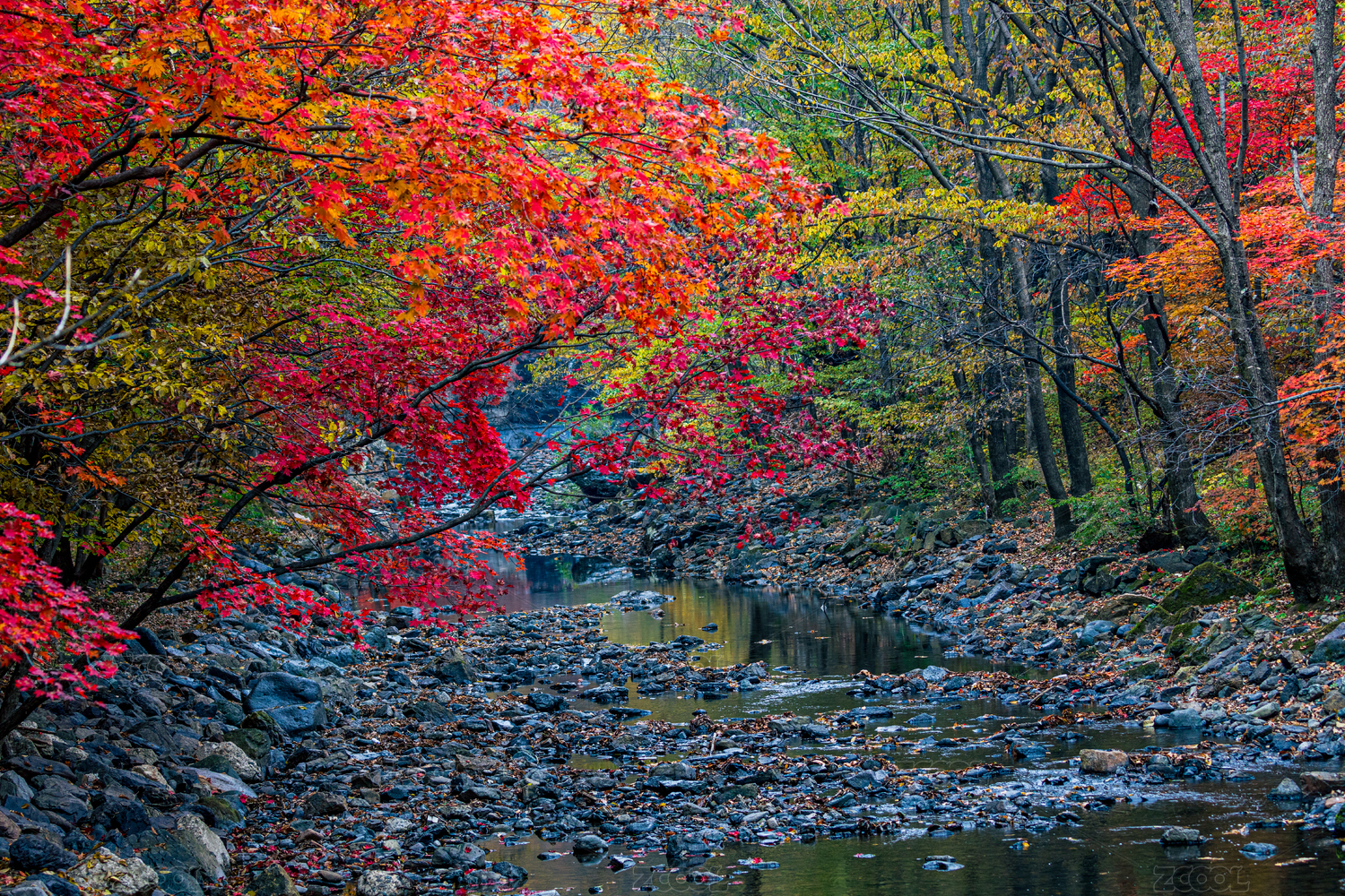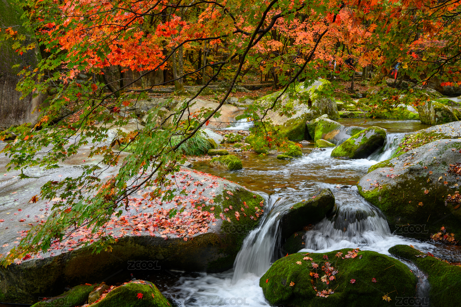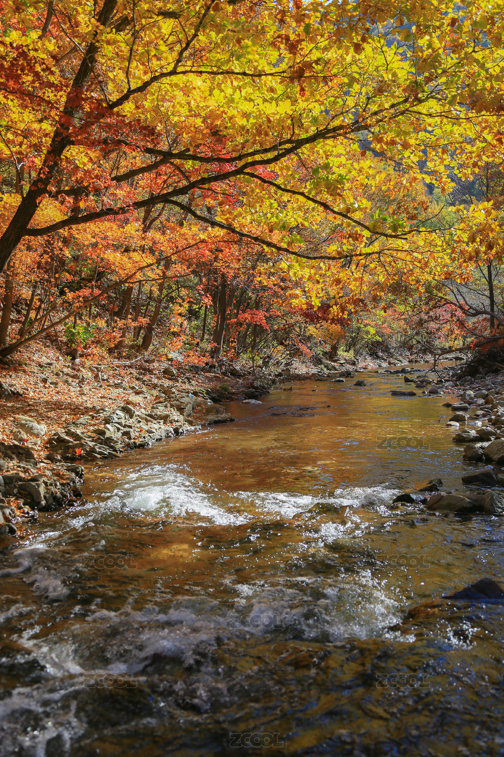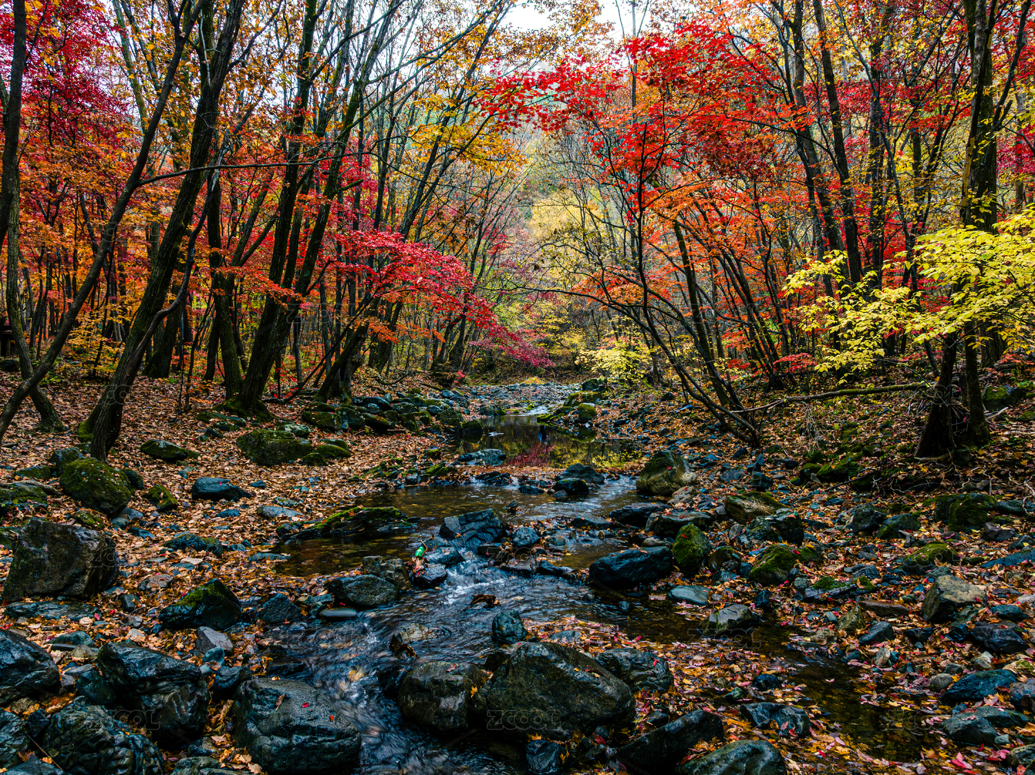 沈阳本溪老边沟,秋季枫树红叶溪流自然风光