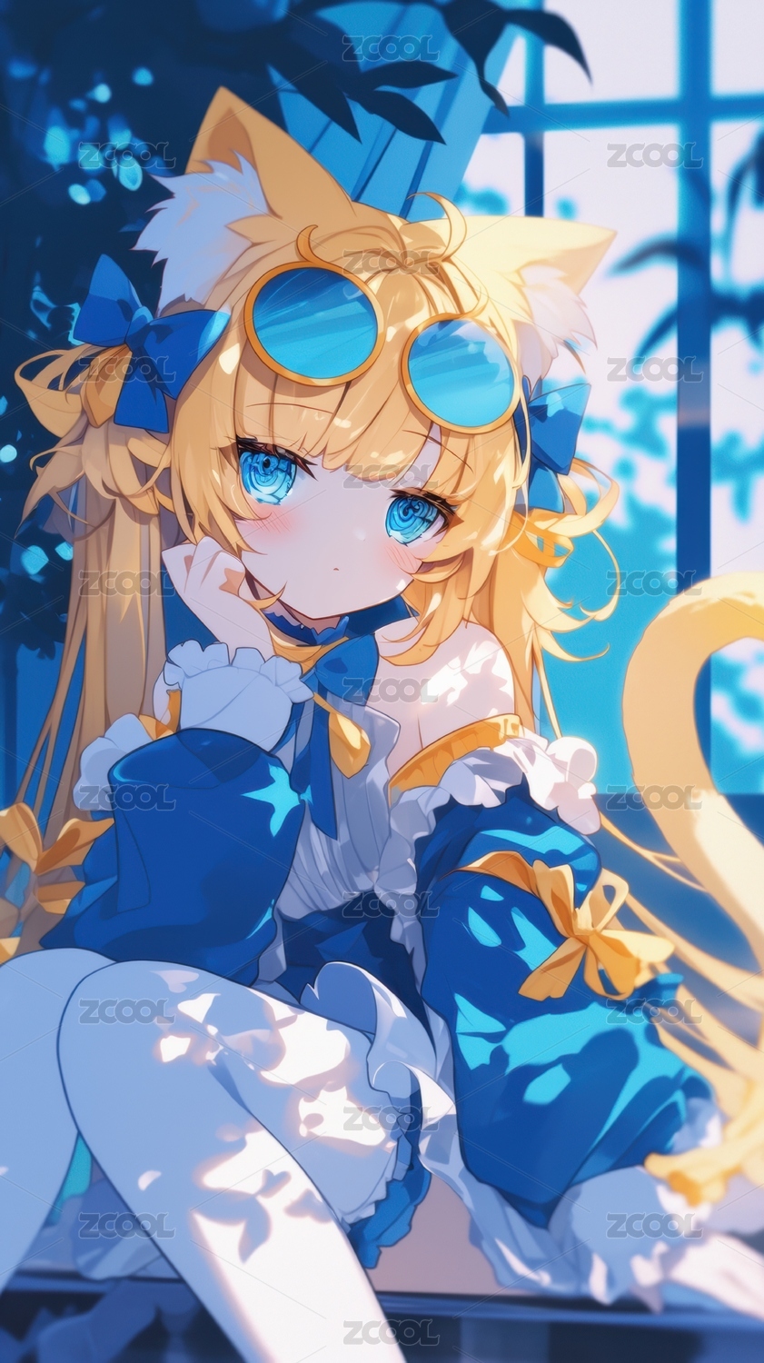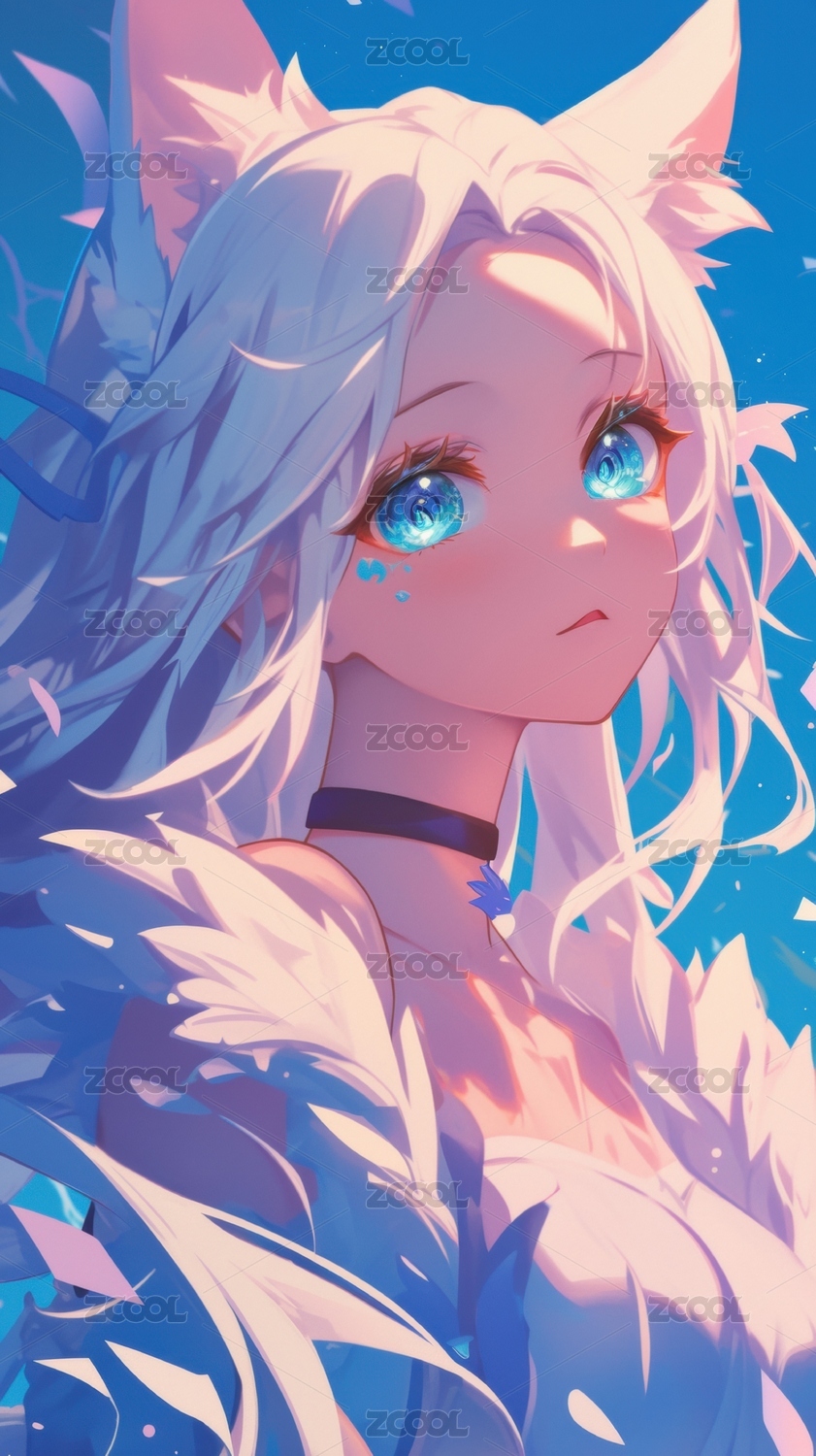 蓝眸猫耳少女的梦幻肖像