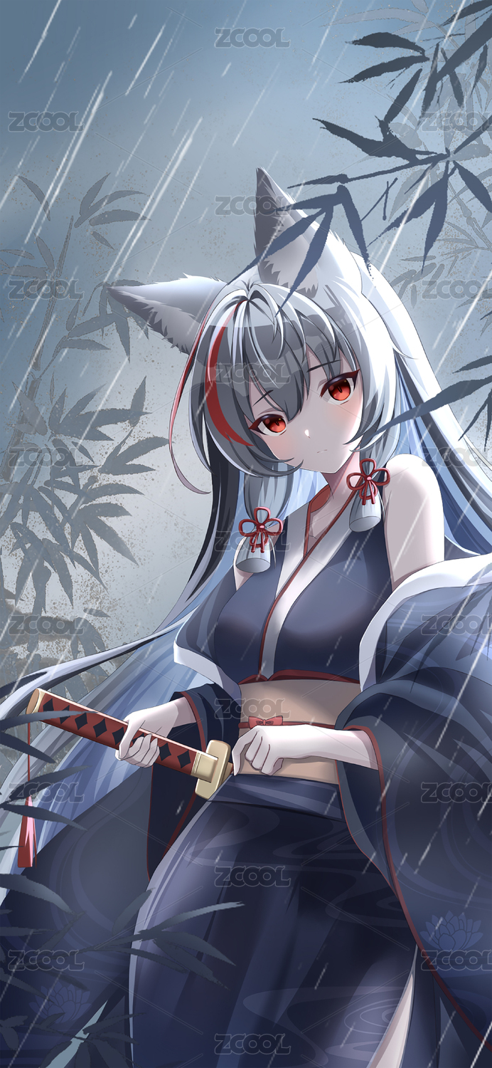 在竹林中拿着剑的女孩