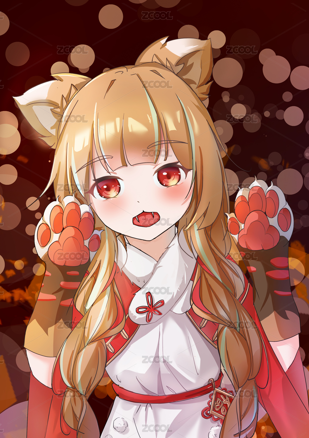 绿发猫耳少女的神秘微笑
