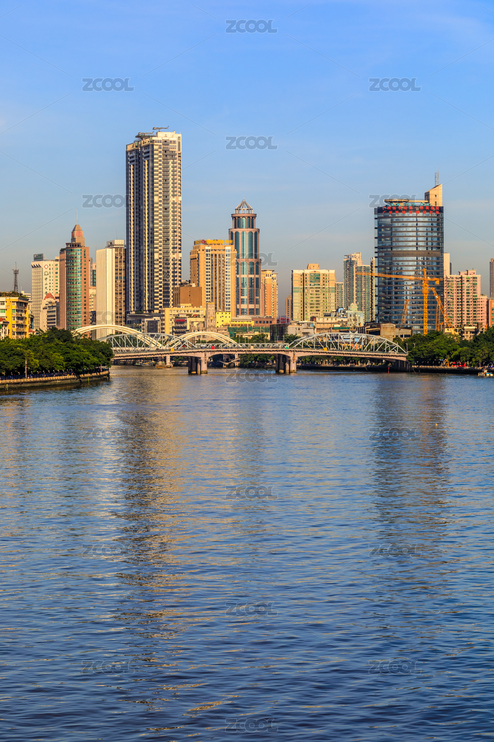 蓝天白云下的苏州河四川路桥两岸城市建筑