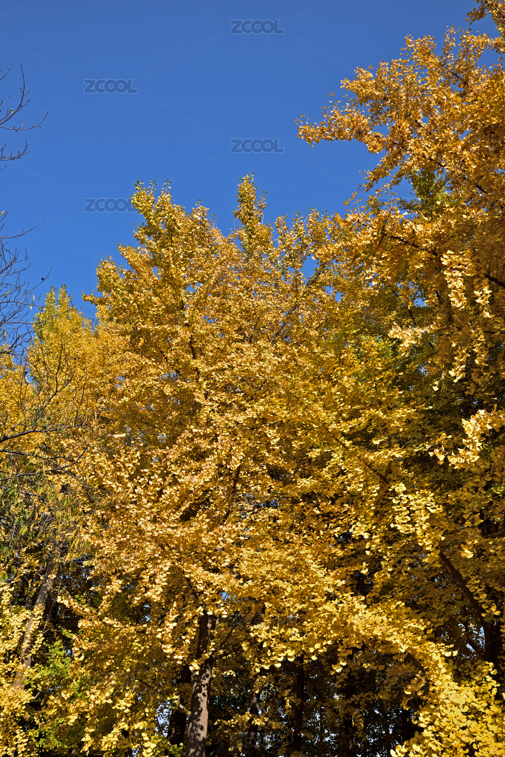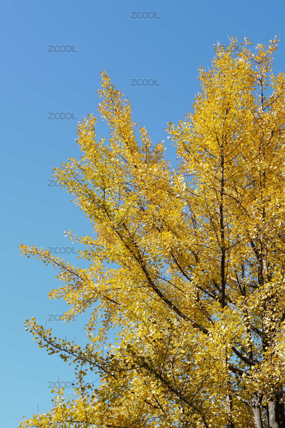 素材,背景,蓝天,仰拍,中景,简洁,银杏树,金黄色,树枝,竖构图